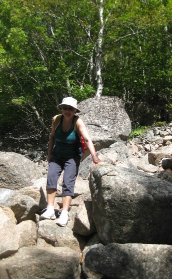 We didn’t waste the good weather. We headed to a place called South Bubble Rock and hiked around it, stopping for lunch on the shore of Jordon Pond. The first leg of the hike was pretty challenging as it was downhill on a slope that looked like a rockpile and we descended about 600 feet in a third of a mile (By the way, this is a good definition of “steep”).