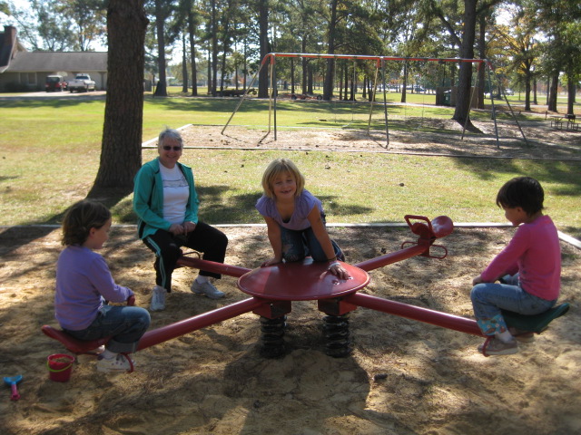 We had Sandra and the girls over for dinner last Friday night and then the girls stayed overnight with us. We visited all of their favorite places at the Reservoir—the boat launch to pick up shells and feed the ducks, and the playground, both for the swings etc. and to dig in the sand. We also hiked along the Pearl River below the dam, an interesting view of the dam with lots of white sand. Katrina returned home Friday evening but the twins spent Saturday night with us and then we took them to church on Sunday morning. They’re attending Marvin United Methodist Church so we felt right at home!