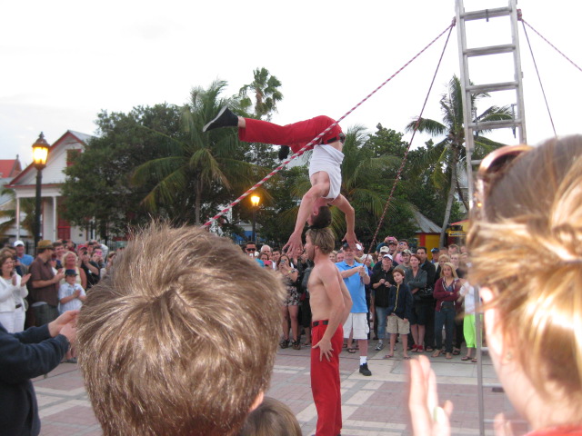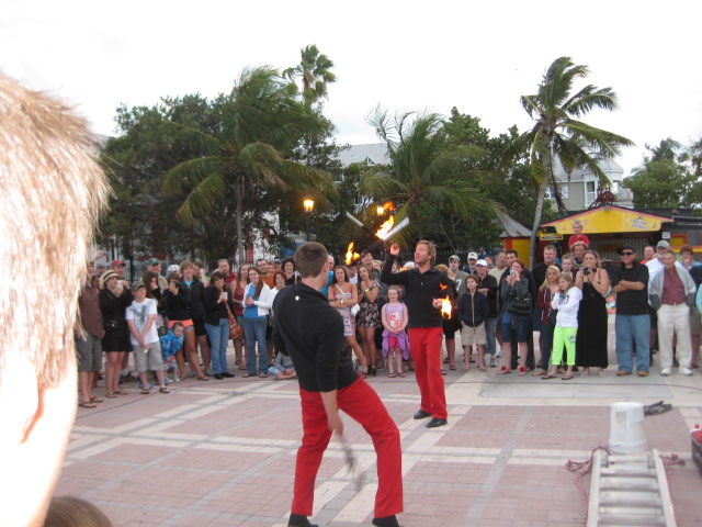 Of course Key West is all about the water, at least in Bob’s opinion, and we went kayaking and snorkeling right off the shore, about 100 yards from our trailer.  Early in our stay Bob did a SCUBA dive on the Vandenberg, an Air Force radar ship sunk as an artificial reef.  Pat came along and snorkeled on the surface while Bob was 100 feet below.  The Vandenberg was sunk in 2009 and is teeming with aquatic life with lots of coral growing on the hull, and fish, squid, octopus as well as other aquatic life making their home inside the Vandenberg.A favorite activity for anyone visiting Key West is watching the sunset at Mallory Square.  There are street performers, musicians, magic acts, and gymnastic acts as well as vendors to entertain you while waiting for the sunset.  Of course wandering Duval Street at night watching the crowd is a “must see” event.   Our first night at Mallory Square we were told about a great restaurant with music that wouldn’t ruin your hearing and we decided to check it out.  The “Smokin’ Tuna” was terrific!  Good food, nice music, and great service and all of it under the stars.  So if you like open air dining, check it out!