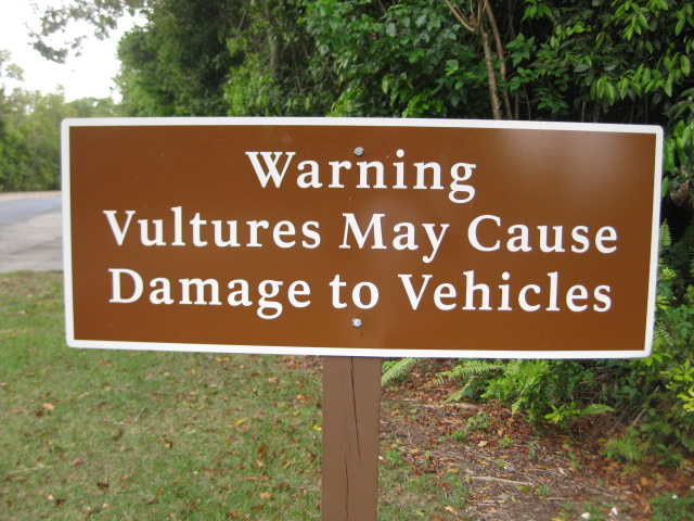 Throughout the park we saw signs warning us about vultures. Apparently there is a problem with the vultures in the everglades, they like the rubber gaskets on car windows!