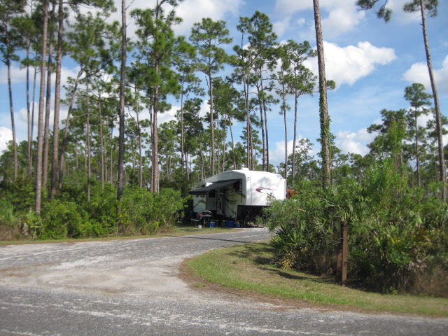 Everglades has two campgrounds. Long Pine Key Campground is the closest to the entrance and has no hookups or showers. Flamingo Campground is on the southern coast of the Everglades and has some sites with electric and water.