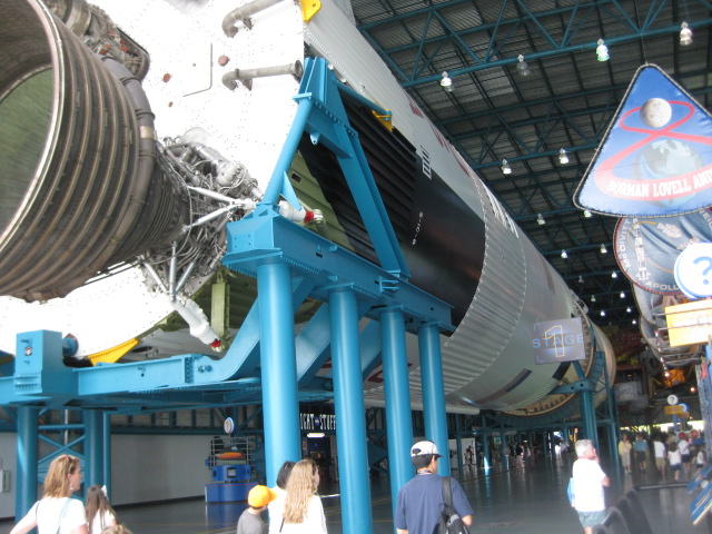 This was followed by the bus tour of the complex. While traveling from one place to another there are videos played on the bus that highlight events from the history of the space center as well as descriptions of some of the complex’s facilities. There are two stops on the tour. One is an observation tower where you can see almost the entire launch complex, including the launch pads for the Space Shuttle and the Saturn V. The other is the Apollo/Saturn V Center. Here you can see exhibits about the space program from the first Mercury missions through the Apollo missions.
