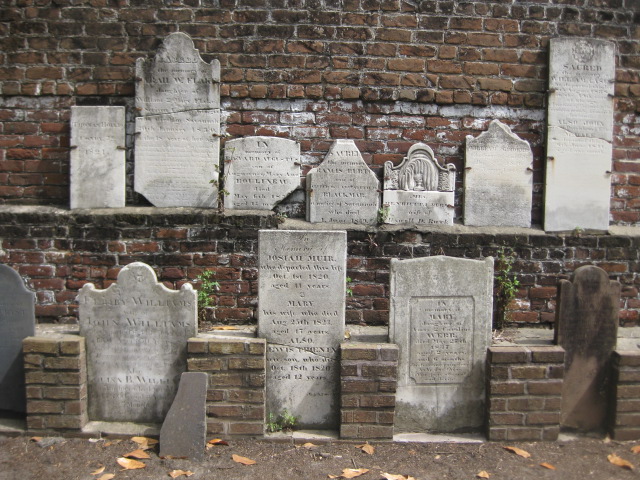 One of the interesting stories came from the cemetery. During the Civil War, Union soldiers camped in the cemetery and moved many of the headstones to make room for their tents. When they were bored they often changed the engraved dates on the headstones, so it appears that some people died before they were born! After the war the city tried to reposition the headstones, but were often unable to determine the proper location. They placed the headstones against a wall in the cemetery so the families could find them, and possibly reposition them properly.