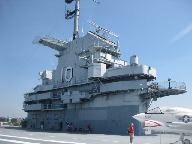Friday, we visited Patriot’s Point to tour the USS Yorktown. The USS Yorktown (CV-10) was built to replace the original USS Yorktown (CV-5) which was sunk at the battle of Midway. The Yorktown served through WW II (11 battle stars), Vietnam (5 battle stars), it assisted in the recovery of the Apollo 8 space capsule and was decommissioned in 1970.
