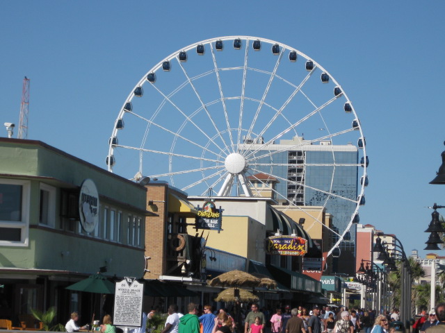 Myrtle Beach was generally relax and enjoy yourself time, with no big sightseeing on the agenda. Bob was back on Thursday evening and our daughter, Elisabeth, drove down from Raleigh, NC on Friday to join us for the weekend. We had a special meal to celebrate her birthday on Friday and on Saturday did some shopping, sightseeing on the Boardwalk and out for dinner. Pat loves Ferris wheels and we all enjoyed riding in the SkyWheel, the tallest Ferris wheel in the Eastern United States at 200 feet tall with a million LED lights. It seemed like we could see forever from the top of it.