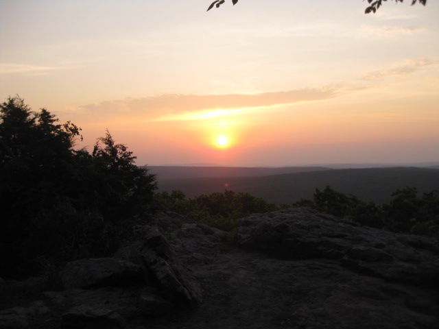 stopped at a stream to fill all of our water containers as there was no other place along the route to get water. We got to the summit just before 5:00, so we had almost three hours to set up camp, make dinner and clean up before nightfall. What a great view! We could see for miles and miles. It had been hot all day with temperatures approaching 90 degrees. Fortunately we had a canopy of trees above u