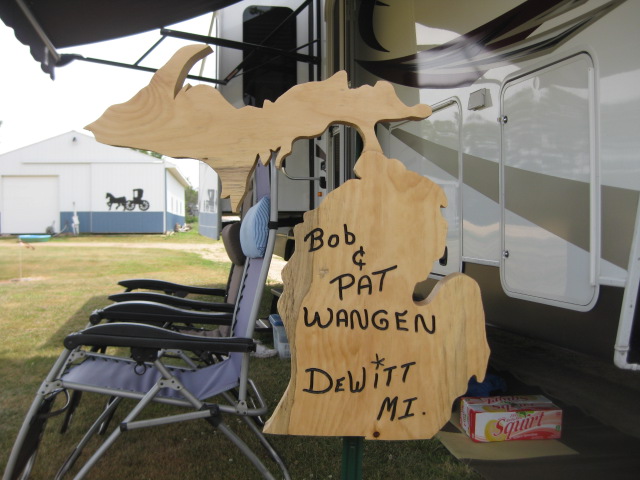 We were on our own after the weekend and we spend a lot of time just relaxing. We would exercise in the morning, and take it easy for the rest of the day. Bob had been looking for a place that could make a sign in the shape of the State of Michigan with our names on it for the trailer. We took a drive over to Houghton Lake to see if there were any shops in that area that did this kind of work. We didn’t have any luck there, but we had left our information at a shop in Lake City and the owner contacted us the next day and told us he could make our sign. We picked it up on Thursday morning and it was just what we were looking for! We hope that this will help us meet other RVers from Michigan in our travels.