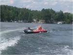 in the middle of the lake and everyone, including Wayne’s labrador, Zeke, would go for a swim. Scott’s twin 5-year old daughters took to the water like fish and had no problems with jumping into the water in the middle of the lake. Geri’s boat was the favorite for tubing, even for the twins.