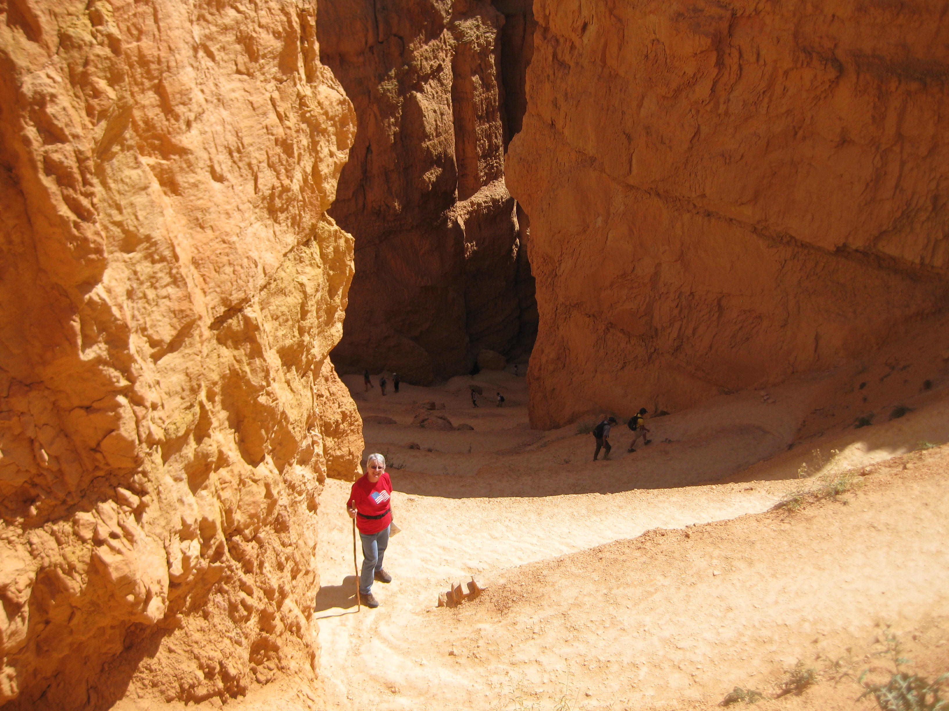Our morning guide had recommended this hike, and said that we should start it at the southern end (called Sunset Point) and end at Sunrise Point. We were really grateful for this advice by the time the hike finished. Our beginning was very steep with many, many steps going down into the canyon! The climb back up to Sunrise Point was long but much more gradual. Pat really wouldn’t have wanted to go up all of those steps at the end of the hike!