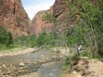 We had our lunch at the beginning of “the narrows”. This is near where the river enters the canyon and you can walk along the river trail with the canyon walls just a few feet away. As you can see,