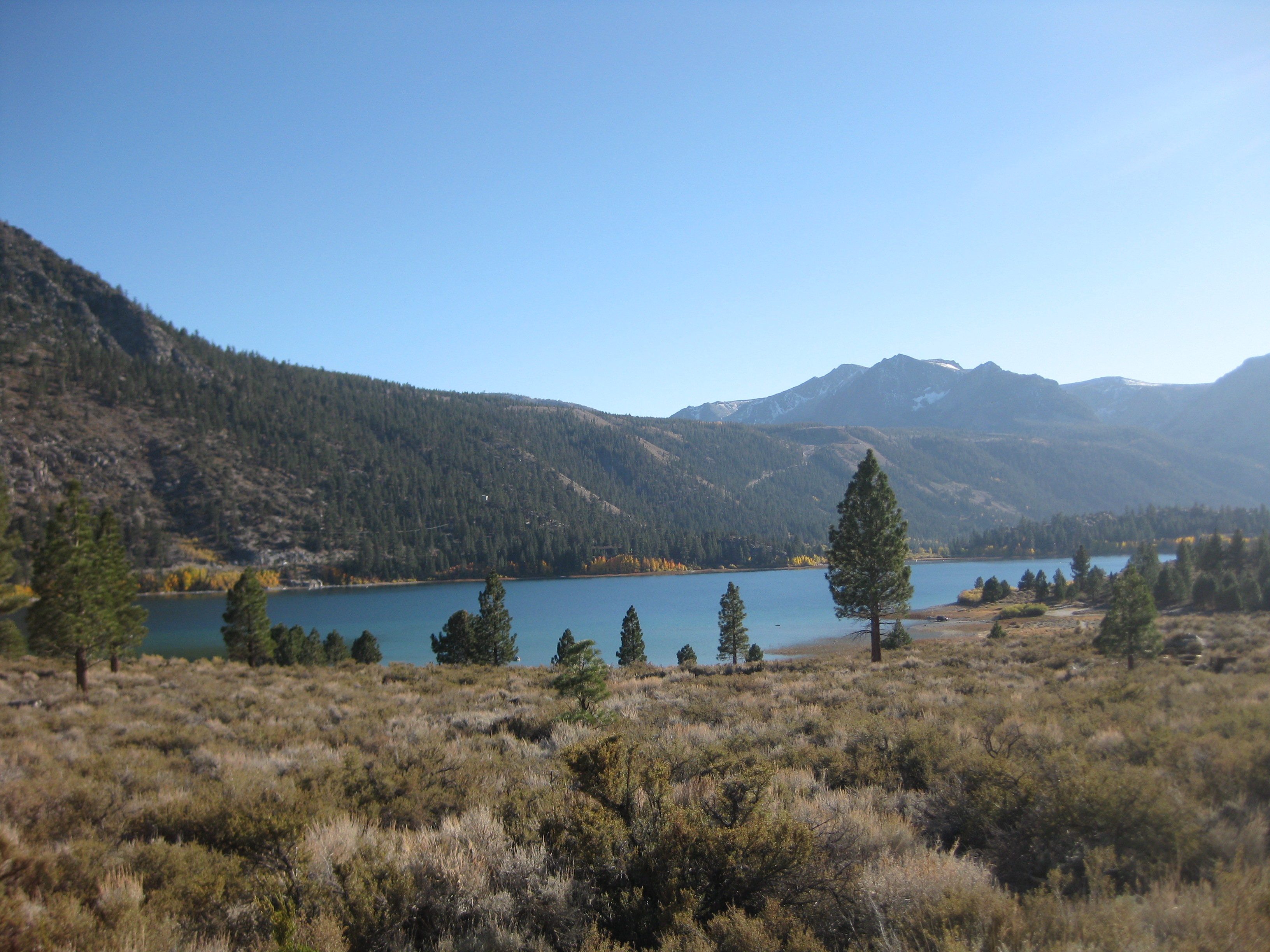 We left Death Valley on October 18th, and traveled to the Inyo National Forest in the Sierra Nevada Mountain Range.  We had gotten an early start so we were not traveling in the heat of the day through Death Valley and arrived at the Oh! Ridge campground in the early afternoon.  Compared to our earlier camping in the desert outside of Las Vegas and in Death Valley, Oh! Ridge was a big change.  First, it had trees!  Not as many as you would have in a typical Michigan campground, but far more than we had seen lately, and it was at 4,000 feet above sea level.  Our campsite was beautiful with a terrific view of June Lake.  We spent the afternoon sitting in the sun, reading, and enjoying the view.