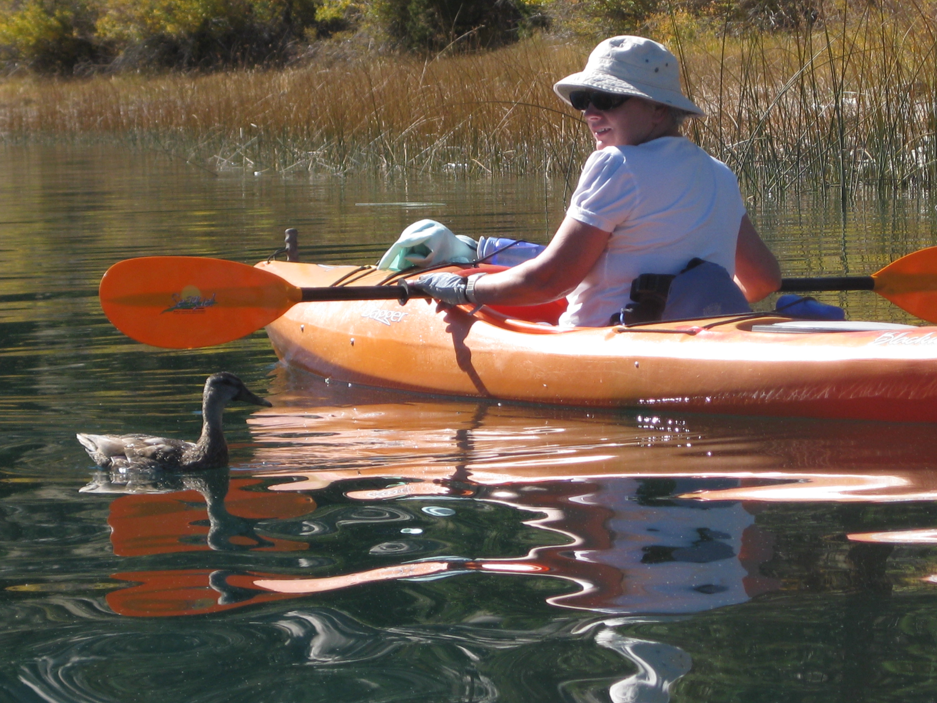 Friday we rode our bikes into town to go to the post office, the hills made the ride quite a challenge!  It was such a beautiful day we kayaked around June Lake.  Even though it was October 19th, the weather was so nice it felt like a summer day.  The water was as clear as tap water and the ducks were so used to people they would swim right alongside of our kayaks.  We stopped at a local marina and then walked to the local candy store for ice cream cones.