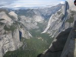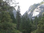 Yosemite Valley is just a beautiful sight.  The cliffs that form the valley walls are impressive and the valley floor is lush forest and meadow, quite a change from the desert canyons of Bryce, Zion and Grand Canyon.  Because we were concerned about the weather closing Tioga Pass we covered a lot of ground in a short period.  By a combination of shuttle bus, hiking, and driving we were able to see El Capitan, Half-Dome, the Cathedral Rocks, Bridal Veil Falls, and others.  We hiked back into Yosemite Falls and while the view was great there was no waterfall – the source of Yosemite Falls dries up in late summer, so at this time of the year you can only see the site of the waterfall, not the waterfall itself.  The Ranger at the visitor center had told us the “must see” sights included the Tunnel View and Glacier Point, as well as the Mariposa Grove.  It was great advice!  Tunnel View gave us a whole different perspective of El Capitan and Half-Dome than we got from the valley floor.  Glacier Point was awesome!  You could see almost the entire Yosemite Valley from there, sights we saw on the ground we could now see from an “aerial” view.