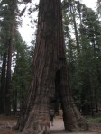 It was late in the afternoon when we drove to the Mariposa Grove of Sequoias.  According to our Ranger, this is the best grove of Sequoia trees in the park.  We thought we would see a small collection of sheltered trees, but it was a forest full of them, one large Sequoia after another.  As we walked the trail through the grove we learned how the Sequoia trees are managed.  As with every other forest we have visited, fire is an essential element for healthy growth – fire clears the underbrush and unleashes seeds from the Sequoia acorns.  Of the many trees we saw in the grove, two stand out.  The largest Sequoia in the grove is the Grizzly Sequoia and it is estimated to be 1,800 years old.  It is 96 feet in circumference and 28 feet in diameter at the base.  One of its limbs is seven feet in diameter, larger than any other non-Sequoia tree in the grove.  The second is the California Tunnel Tree.  In 1895 this Sequoia had a tunnel cut through its base wide enough to allow horse-drawn carriages to drive through.  This is actually the second Sequoia to have a tunnel cut through it.  The Wawona Tunnel Tree was tunneled in 1881 and fell over after a record snowfall in 1969.