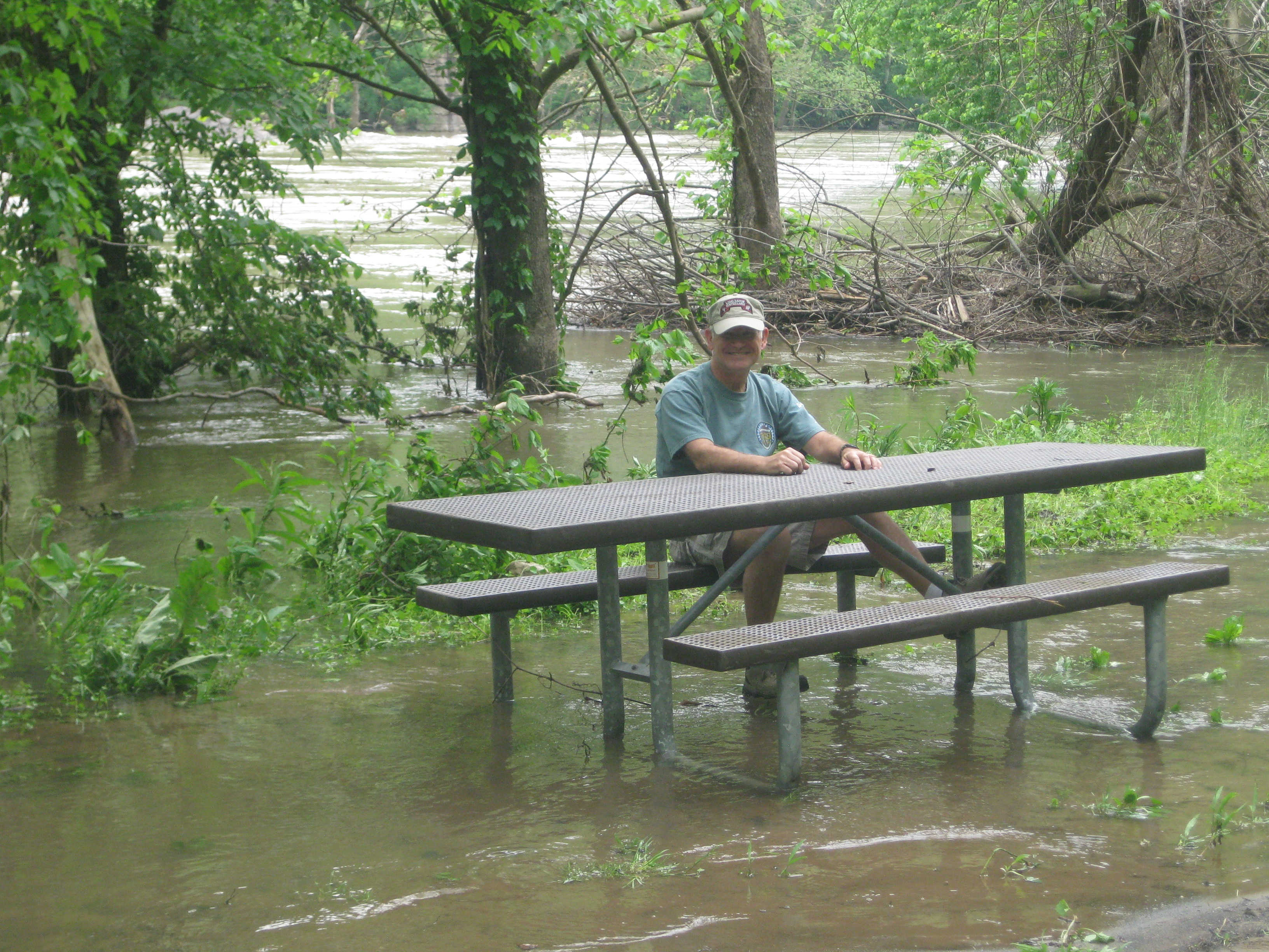 We crested the top of the run and ran right into a ten foot wave that soaked everyone on board! Due to heavy rains in North Carolina the river level was high and the river was running very fast. We hit a series of Class III, IV, and V rapids, mostly IV and V. Our river guide and trip leader Eileen did a great job of guiding us downstream. I think Pat got nervous when Eileen would tell us at the beginning of each rapid which direction to swim if you fell out of the boat! We stopped for a lunch of burgers and chicken with all the “fixin’s” before we headed further down river. The afternoon portion of the trip was a bit wilder than the morning with water hazards such as the “Meat Grinder” and “Whale” to get past. All in all it was a great rafting experience that we both enjoyed and one we will remember for a long time.