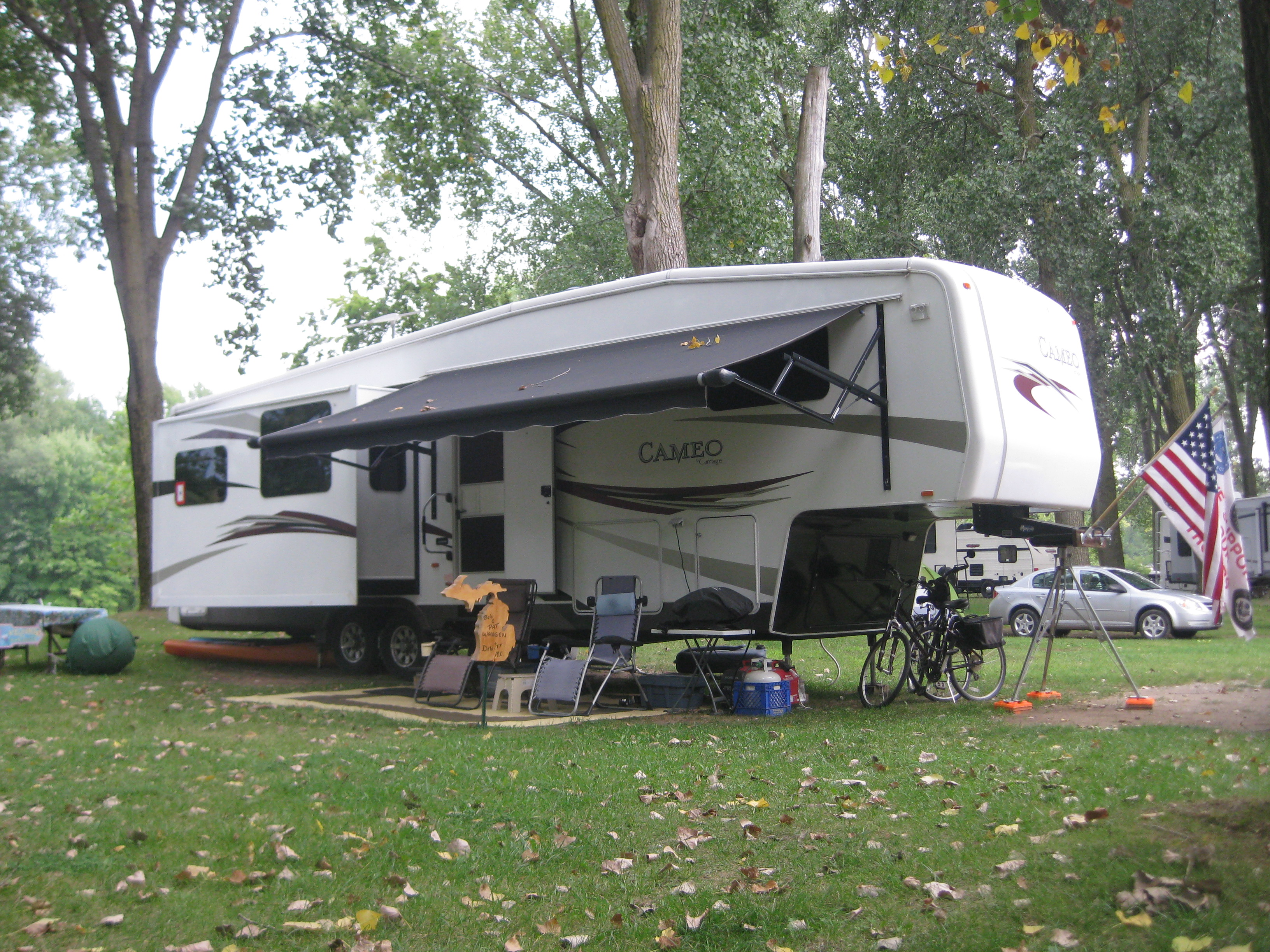 end of Lansing was a new experience for us. We were not sure it would be a campground that we would enjoy. We drove through to check it out and found it to be a nice campground that was more convenient to Lansing than Sleepy Hollow State Park, and the monthly rate was quite affordable. One of the nice things about the location is that we were only a quarter mile from the south end of the Lansing River Trail. This gave us an excellent location for fitness running/walking/cycling, as well as another way to travel to parts of the area. The River Trail runs all the way to Michigan State University (MSU) and