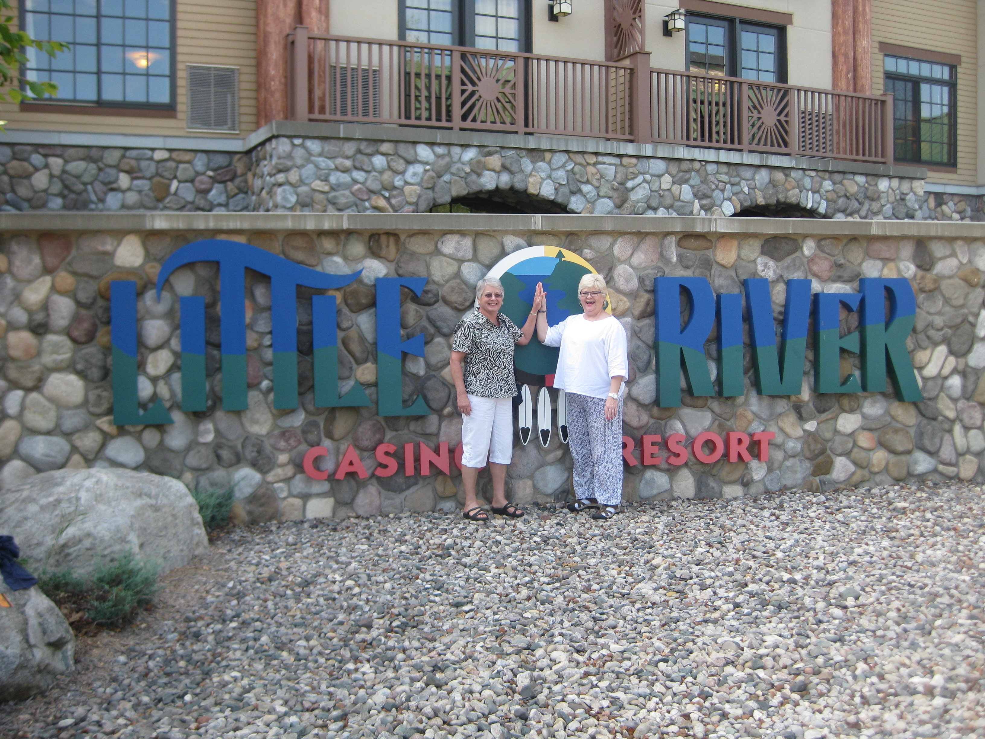 crystal clear inland lake. The water is comfortable for swimming and the underwater visibility was the best I have experienced recently. We were only a short drive or bike ride from our friends Roger and Darcy and were able to spend time with them. One afternoon, Pat and I accompanied Darcy to the Little River Tribe Casino in Manistee. It was a lot of fun and Pat even walked away the big winner for the day.