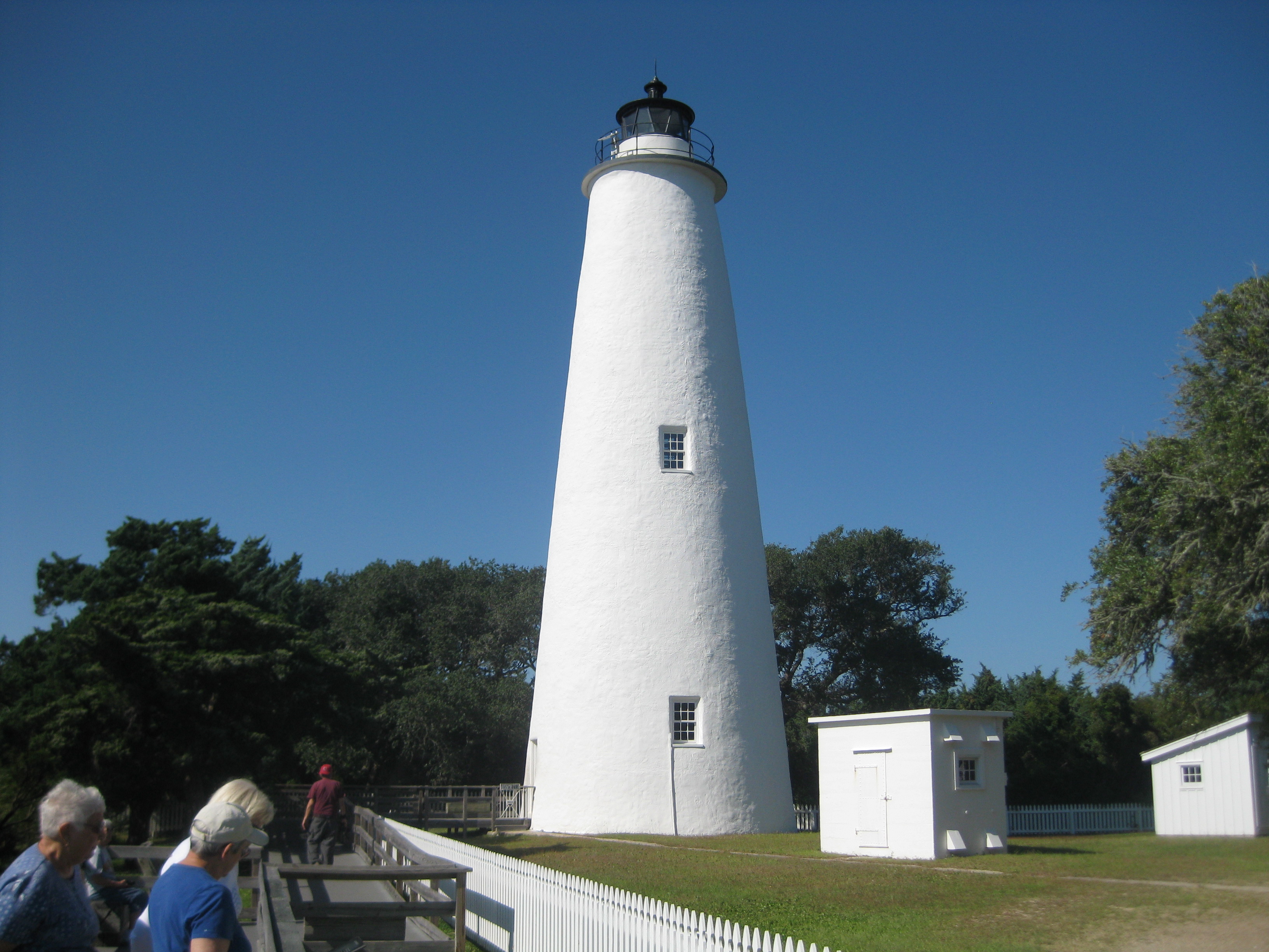 Our first outing was to visit the Cape Hatteras Light. The Cape Hatteras Lighthouse protects one of the most hazardous sections of the Atlantic Coast. Offshore of Cape Hatteras, the Gulf Stream collides with the Virginia Drift, a branch of the Labrador Current from Canada. This current forces southbound ships into a dangerous twelve-mile long sandbar called Diamond Shoals. Hundreds and possibly thousands of shipwrecks in this area have given it its dangerous reputation. The current lighthouse was lit on December 1, 1870. From the 1960s to the 1980s, efforts were made to stabilize the beach in front of the lighthouse, which had started to erode again. In March of 1980, a winter storm swept away the remains of the 1803 lighthouse and caused significant dune erosion. In 1999, after years of study and debate, the Cape Hatteras Light Station was moved to its present location. The lighthouse was moved 2,900 feet in 23 days and now lies 1,500 feet from the seashore, its original distance from the sea. The Double Keepers’ Quarters, the Principal Keeper’s Quarters, the dwelling cisterns, and the oil house were all relocated with the lighthouse.