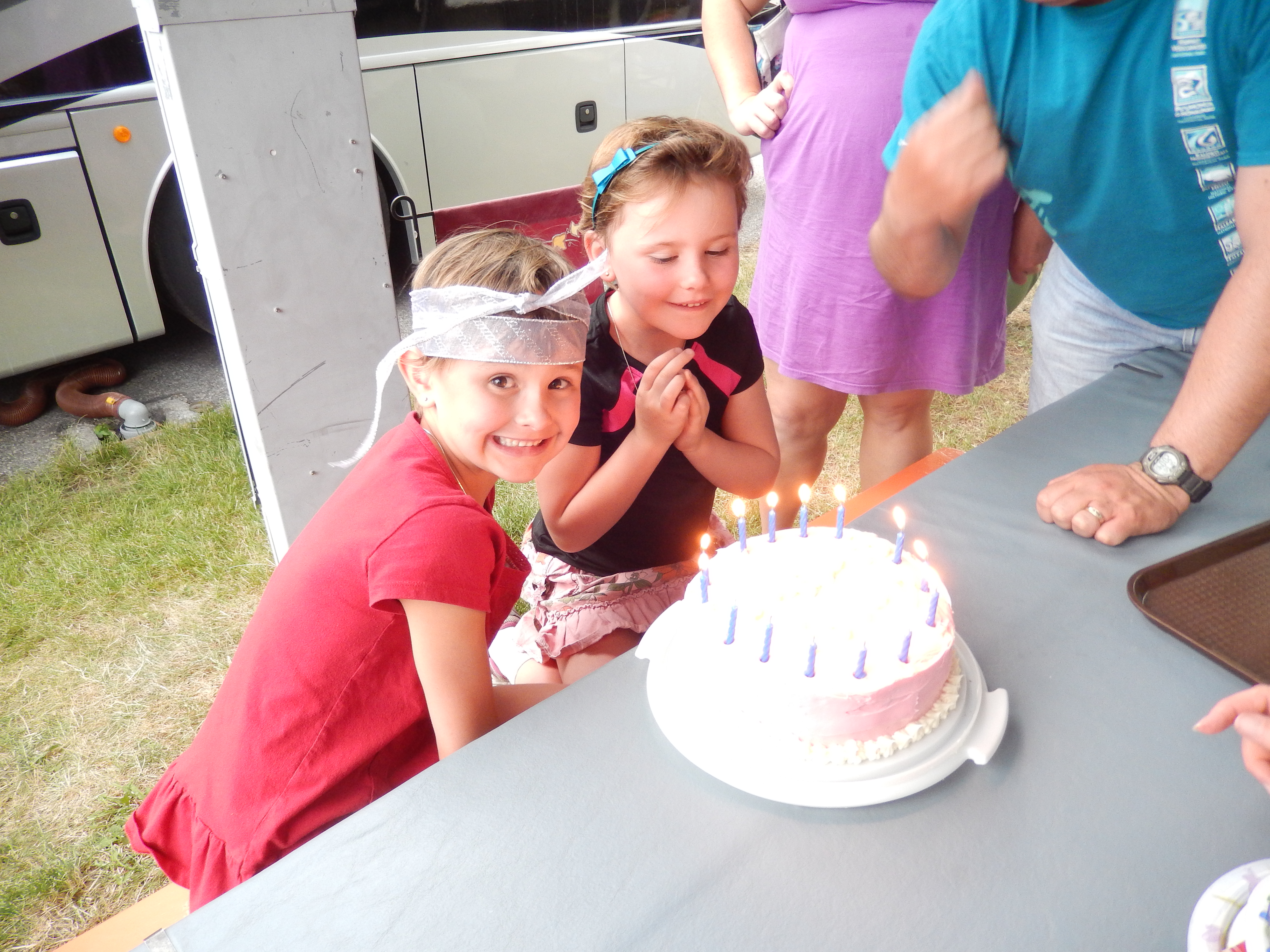 That afternoon the girls all helped bake the birthday cake. We all (Pat and I, Scott, Sandra, and the girls) went out for dinner then came back to the trailer to open gifts and have cake and ice cream. What a great celebration! Pat and I were happy to be a part of it.