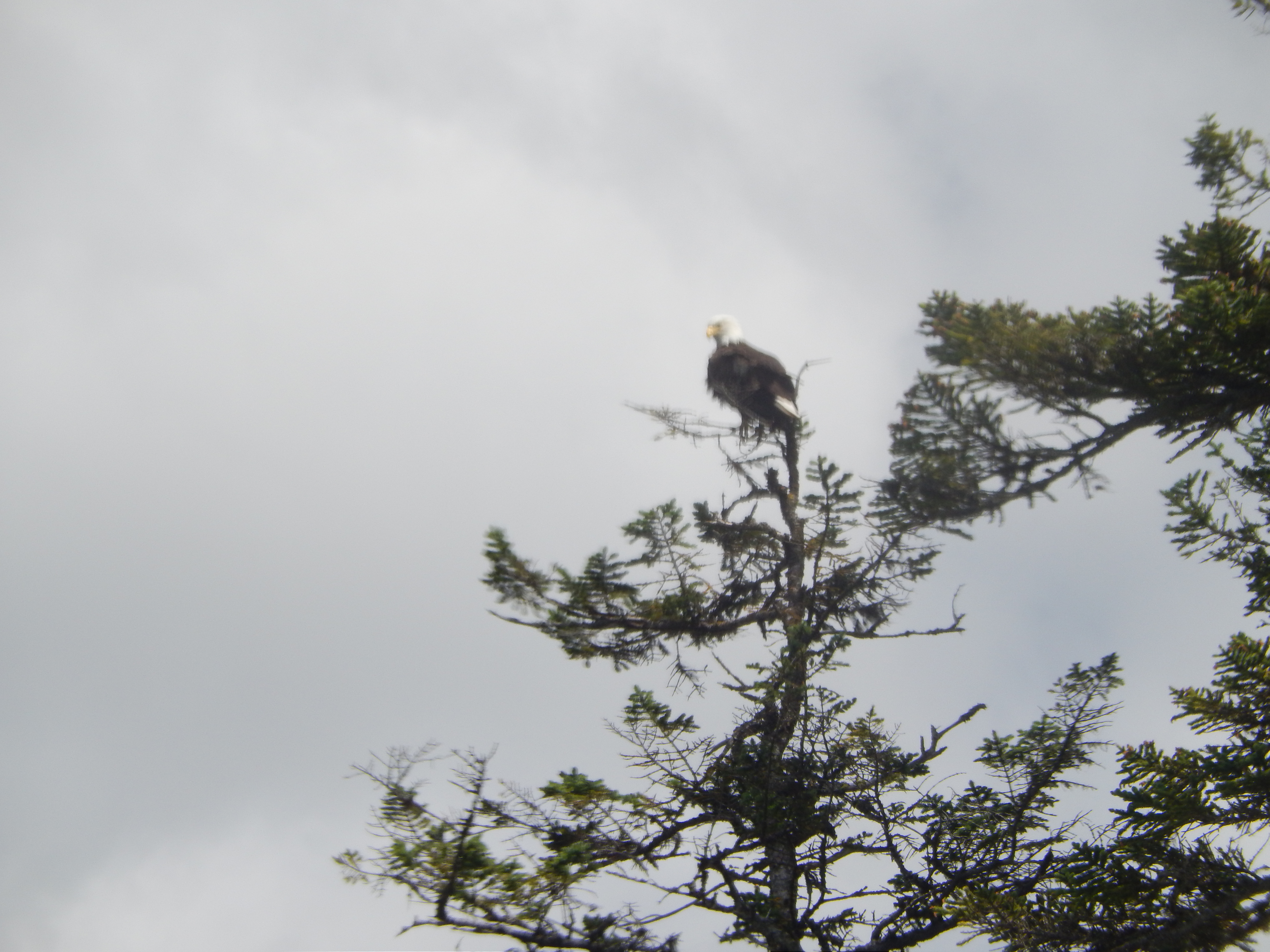 At one point we saw some bald eagles perched in the trees above us. We paddled close than I thought we would ever get and the eagles didn’t seem to be bothered by us at all. We thought we saw some whales blowing on the far side of the bay, but didn’t see any other indication of whales, so it was probably fish jumping.