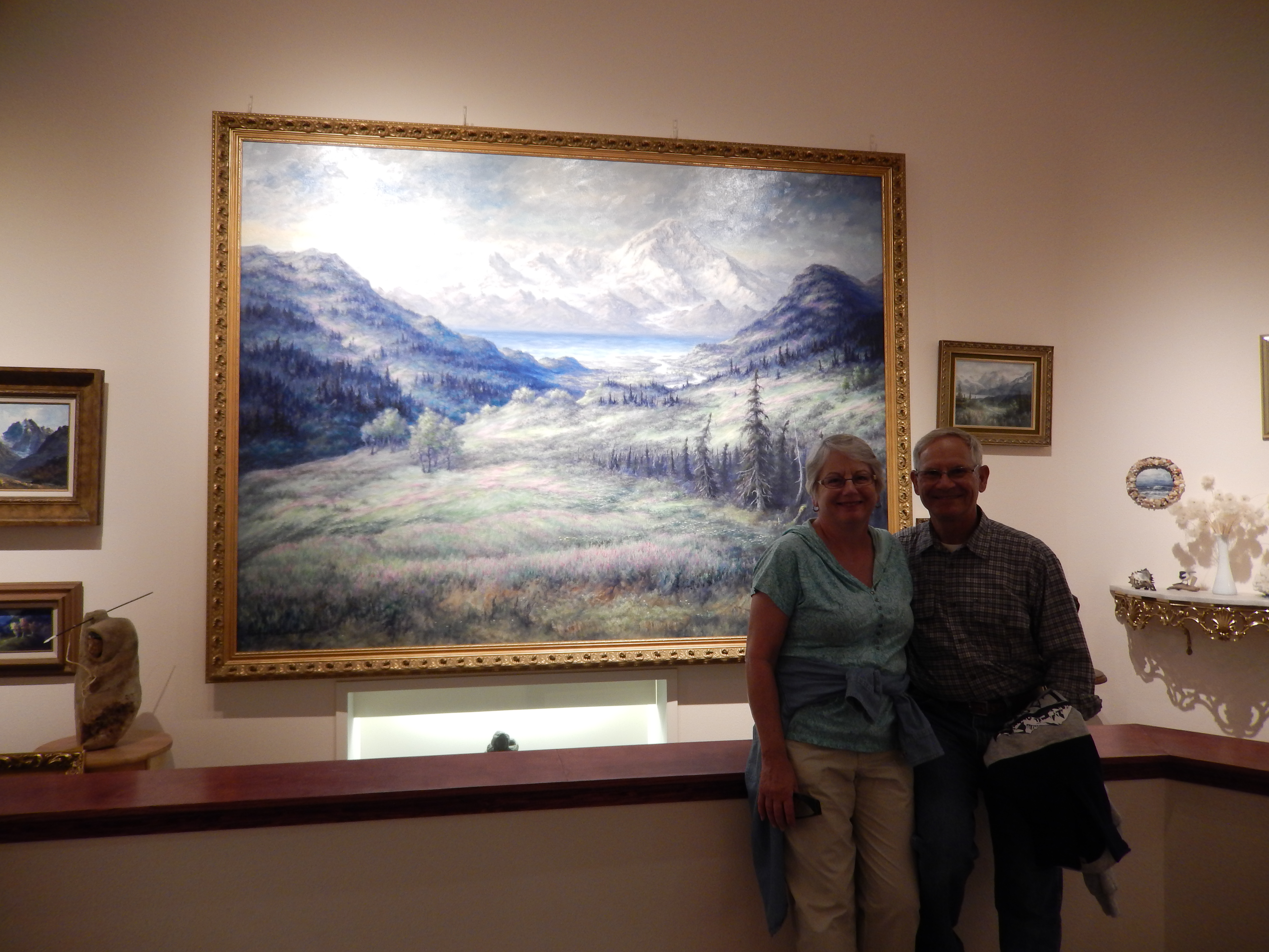 Our group had a bus tour of Homer. Our first stop was the art gallery of Norman Lowell. This artist came to Alaska as a homesteader, then began painting. He is widely recognized as a leading landscape artist. We were able to see his original homestead cabin and their vegetable garden. His lifestyle has definitely improved! His gallery was amazing, some of the landscapes just took my breath away. There were also works from other artists in the area. I was particularly impressed by the carvings from moose antlers.