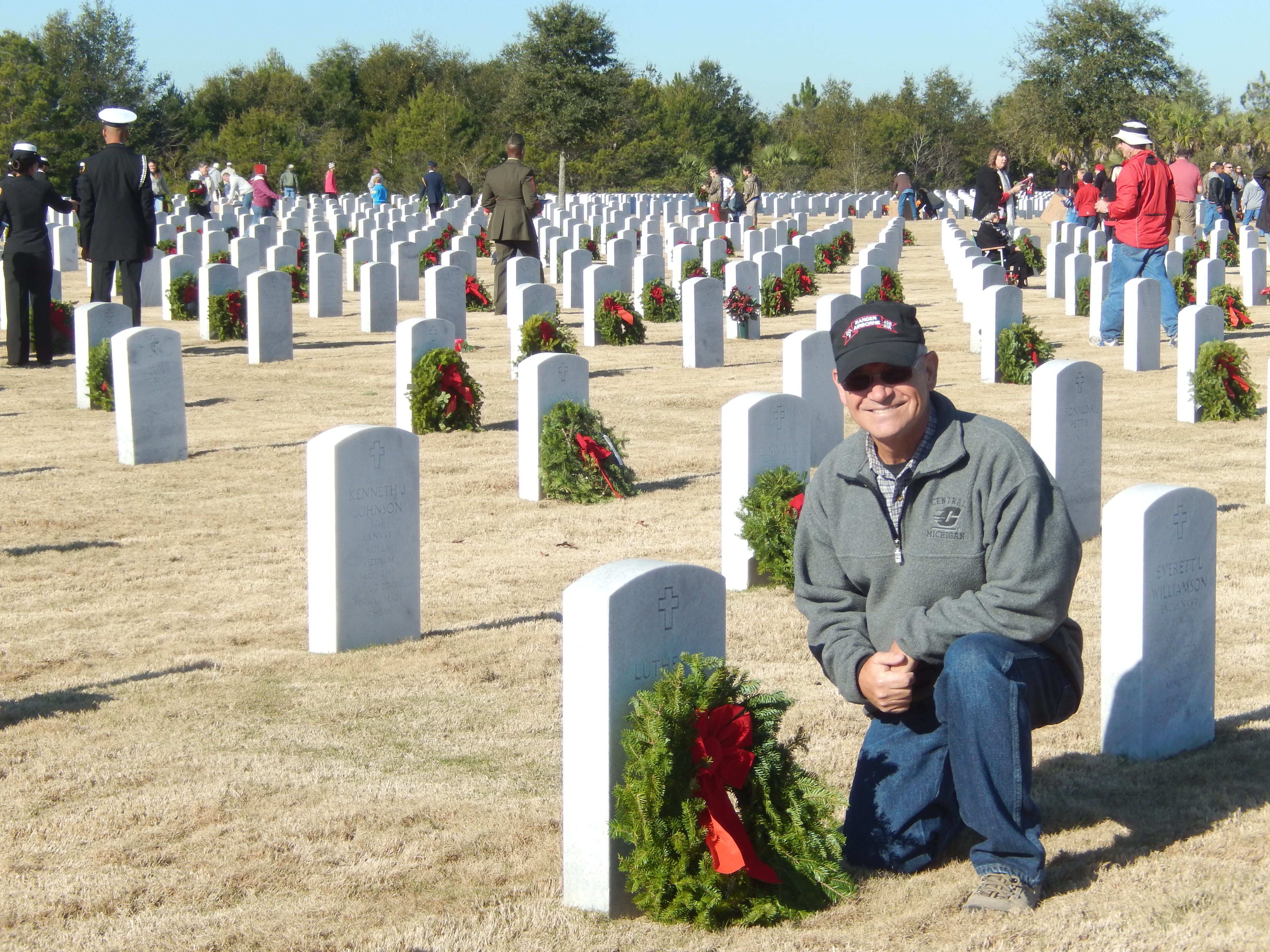 We volunteered to help place wreaths on the headstones at the Barrancas National Cemetery as a part of the Wreaths Across America program. In 1992, a Maine company, Worcester Wreath, found themselves with a surplus of wreaths nearing the end of the holiday season. The owner, Morrill Worcester, realized he had an opportunity to honor our country’s Veterans. With the help of Maine Senator Olympia Snowe, arrangements were made for the wreaths to be placed at Arlington in one of the older sections of the cemetery, a section which had been receiving fewer visitors with each passing year. This marked the beginning of “Wreaths Across America.” Over the years the Wreaths Across America program has grown dramatically and now they ship wreaths to over 540 locations. At the Barrancas National Cemetery there were so many volunteers this year that I’m not sure they needed our help, but it was uplifting to be a small part of this effort. It was moving to see families putting wreaths on headstones of their loved ones.