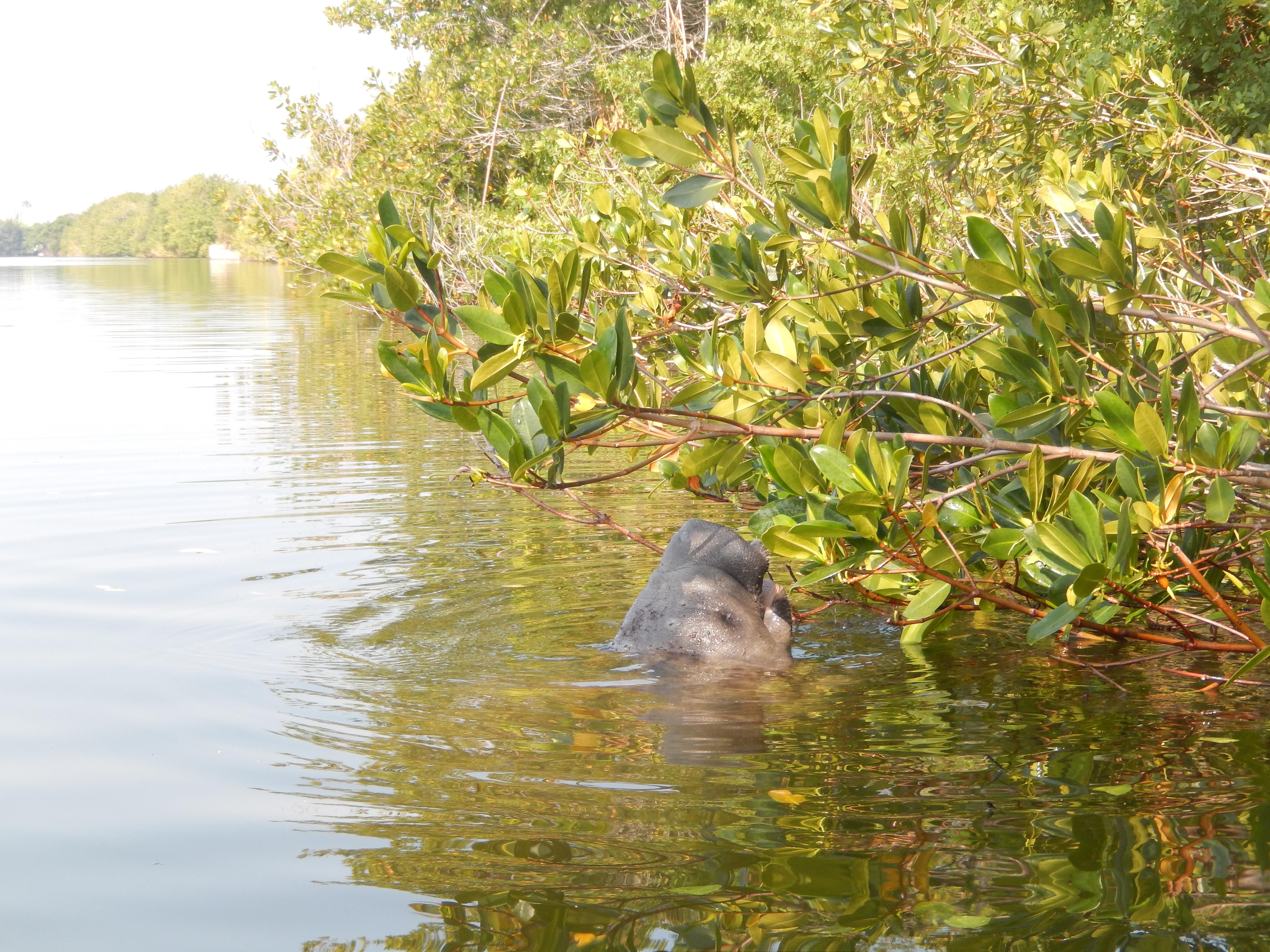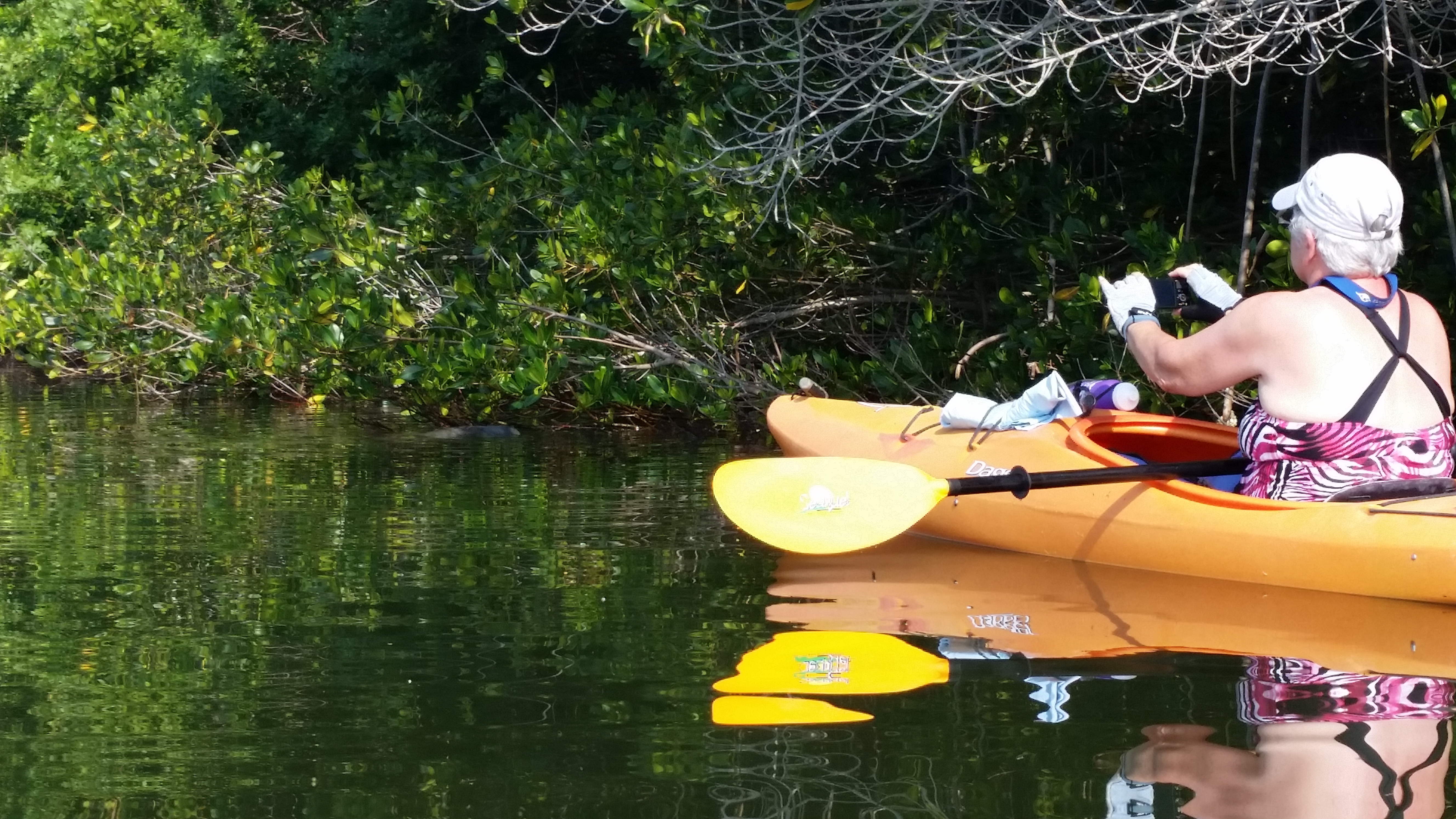 What a beautiful day for kayaking! A light wind and sunny skies made it a pleasure to be on the water. One of the nice things about combining geocaching with kayaking is that you have a plan to follow while paddling. We paddled to some areas that we may not have otherwise explored. At one point we spotted a manatee eating the leaves off a plant on the shoreline of one of the islands, it was quite a show. We passed a couple of other groups of kayakers and told them about the manatee sighting.