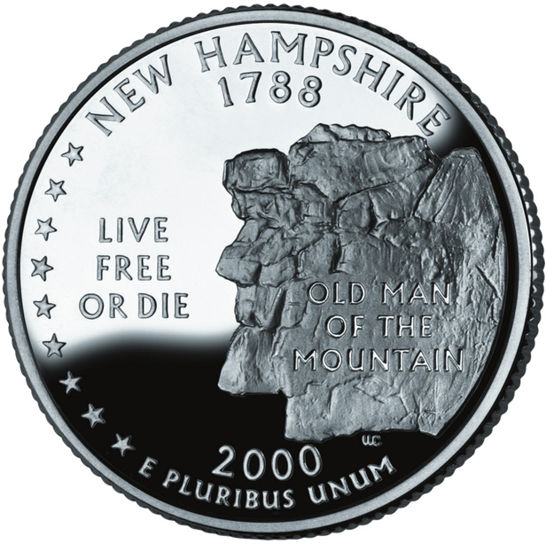 This spring our plan was to complete our goal to camp in all 50 states. That is what brought us to New Hampshire and Franconia Notch State Park. Franconia Notch is a scenic mountain pass, traversed by a parkway winding between the high peaks of the Kinsman and Franconia mountain ranges. As a teenager I camped in Franconia Notch State Park with my family. At that time we were able to see a geological feature known as the Old Man of the Mountain. This granite formation has been here for centuries, and is featured on the New Hampshire quarter. Over the decades, there was increasing erosion and decay of the formation and in the summer of 1958 the state emplaced four steel rods with huge turnbuckles, weighing up to 700 pounds, to hold the forehead in place. They sealed cracks with fiberglass to keep water from seeping into the granite and prevent further erosion. Unfortunately on May 3, 2003, it all failed. Apparently the granite that supported the chin had been weakened by decades of water reacting with the feldspar potash and the chin fell from the mountain. Once the chin fell away, the remainder of the face was unsupported and it collapsed within seconds – The Old Man of the Mountain was gone.