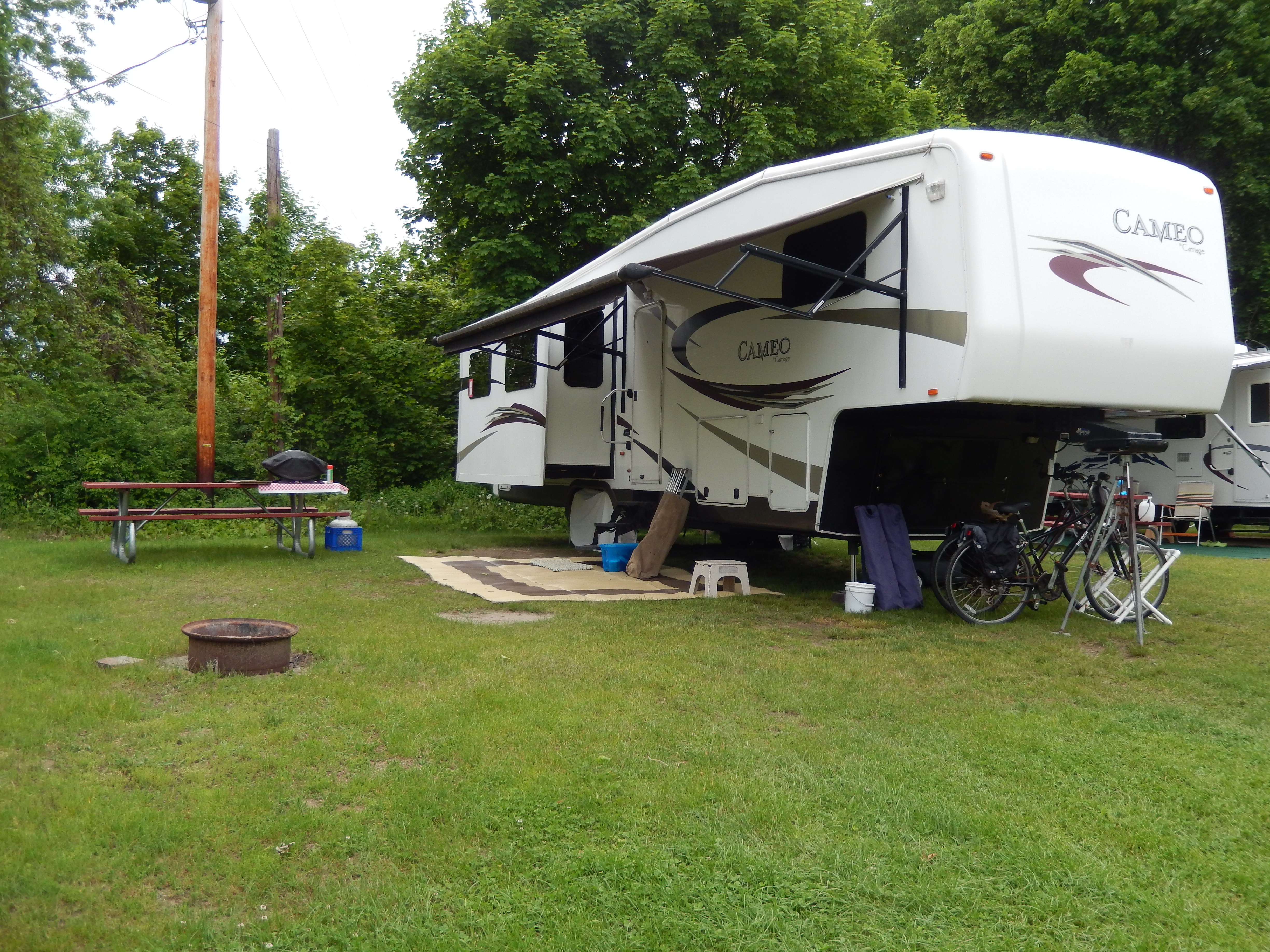 We made reservations at the Ivy Lea Campground in the Thousand Islands, just to play it safe. There were plenty of sites available when we did it. If you want a good “big rig” site, try #133.