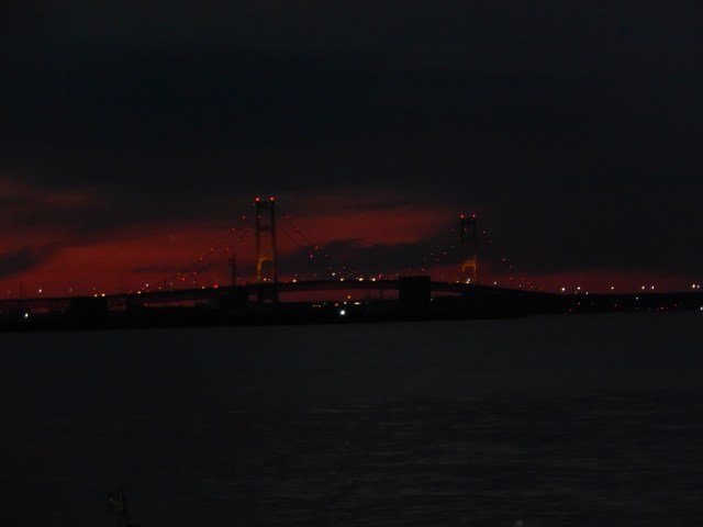 From the beach at the campground we could see the Mackinac Bridge. As night fell the bridge lit up like a chain of jewels suspended above the water.