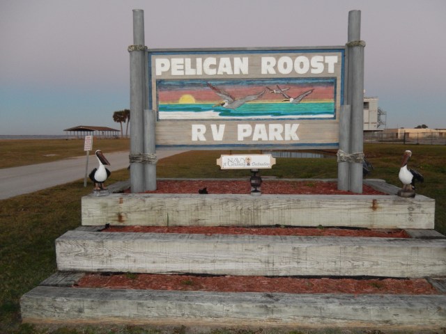 Pelican’s Roost in one of the more popular military RV parks in Florida and it is not easy to get a reserved site. We thought we might have a chance this early in the “snowbird” season, and were pleasantly surprised when we were able to get a full hook-up, pull through site right on the waterfront. I guess you could call it a post-Thanksgiving blessing.