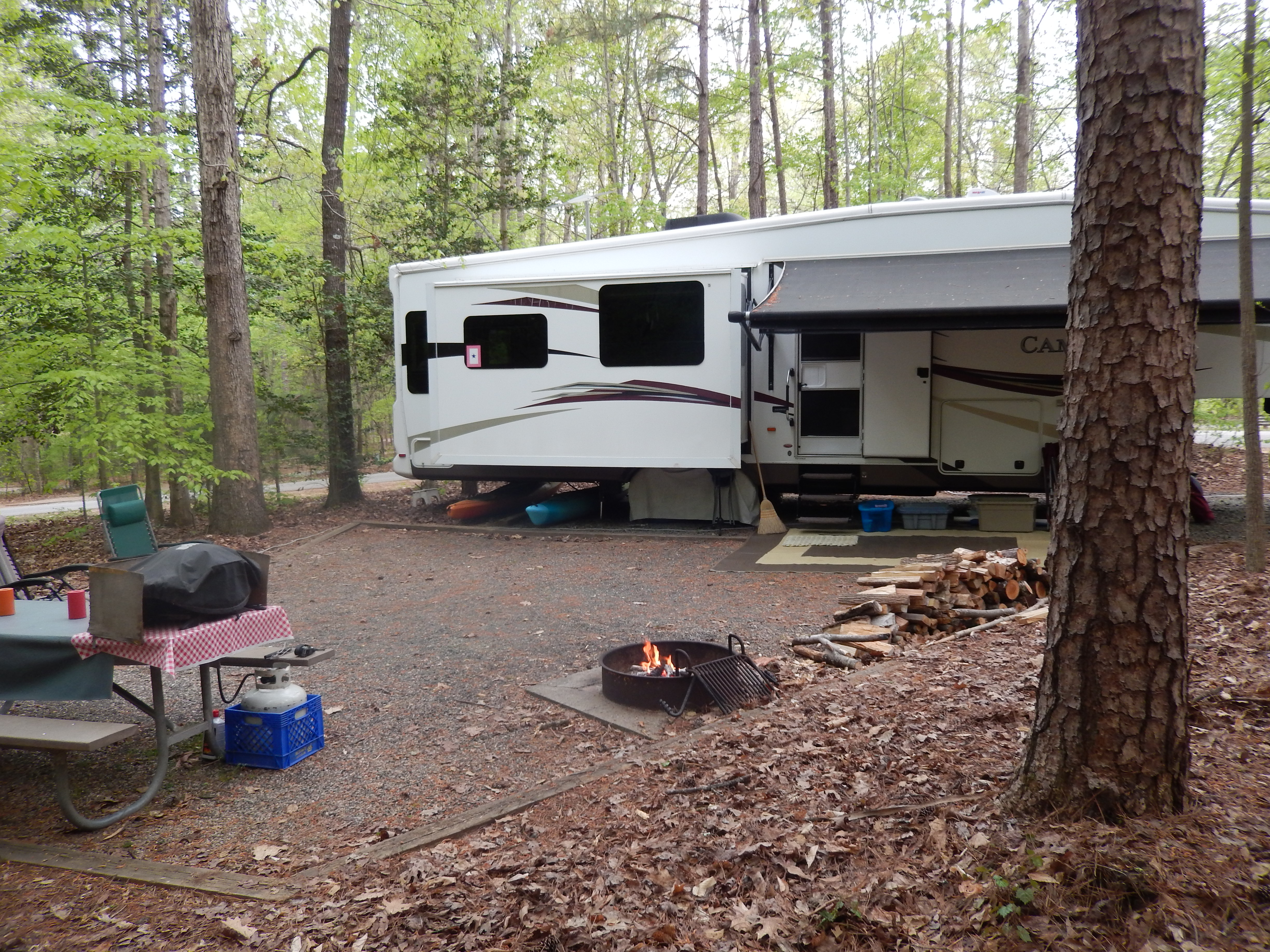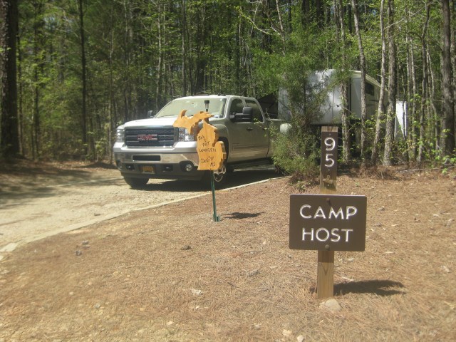 Our desire to be camp hosts was not driven by getting a free campsite in exchange for light work, but to be able to stay in the park for more than two weeks at a time. You see, North Carolina, like many other states limits stays in the park to fourteen days in a thirty-day period. Our daughter lived in Raleigh and we wanted to stay longer than fourteen days, hence our desire to be a camp host. Holly Point is a beautiful campground. The campsites at are roomy and wooded, giving each camper plenty of privacy, and many sites offer easy access to the lake. An added benefit was that it was early in the season and there was plenty of deadwood for campfires.