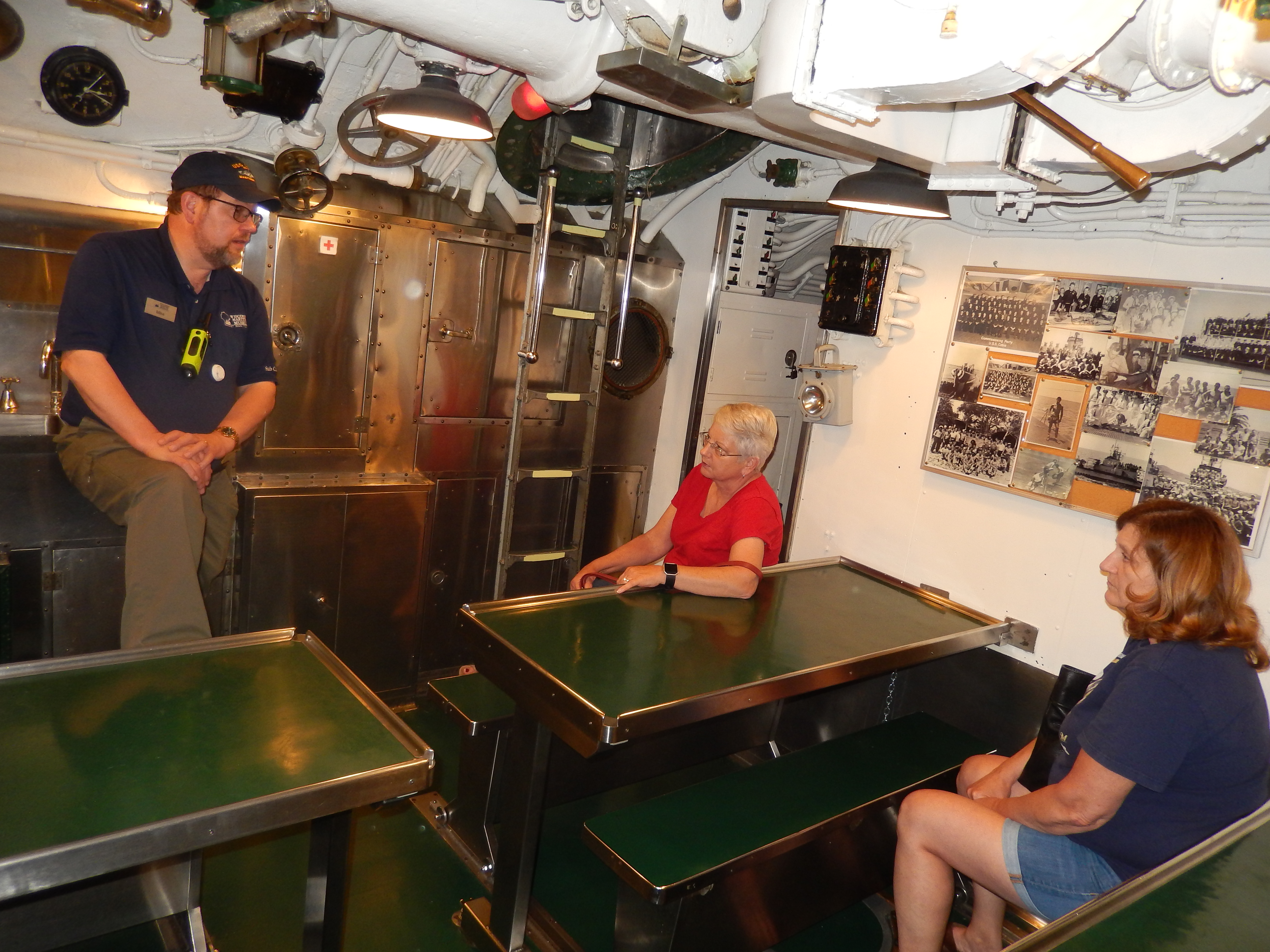 Pat, her sister, Mary Lee, and I started our tour in the forward torpedo room and moved aft (towards the rear). The Captain’s cabin was the roomiest berth in the submarine – I wouldn’t call this roomy.