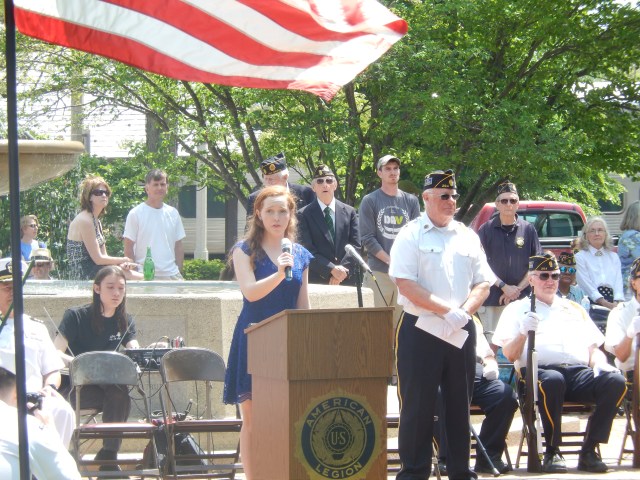 On the morning of Memorial Day we rode our bikes on the Robert McClory Bike Path to the small town of Lake Forest for their Memorial Day Ceremony. It reminded us of when we lived in the small town of DeWitt back in Michigan – small town Americana! The short parade was led by the American Legion Honor Guard, followed by the high school marching band, and Scout troops. The ceremony was begun with the Star Spangled Banner, sung by a delightful young singer who did a marvelous job. One of the senior navy officers from Great Lakes told of a WWII veteran that he had gotten to know well and his stories. The Scouts completed the ceremony be raising the Flag from half-mast to full. It was a simple, but moving ceremony and we were happy that we were able to share in it.
