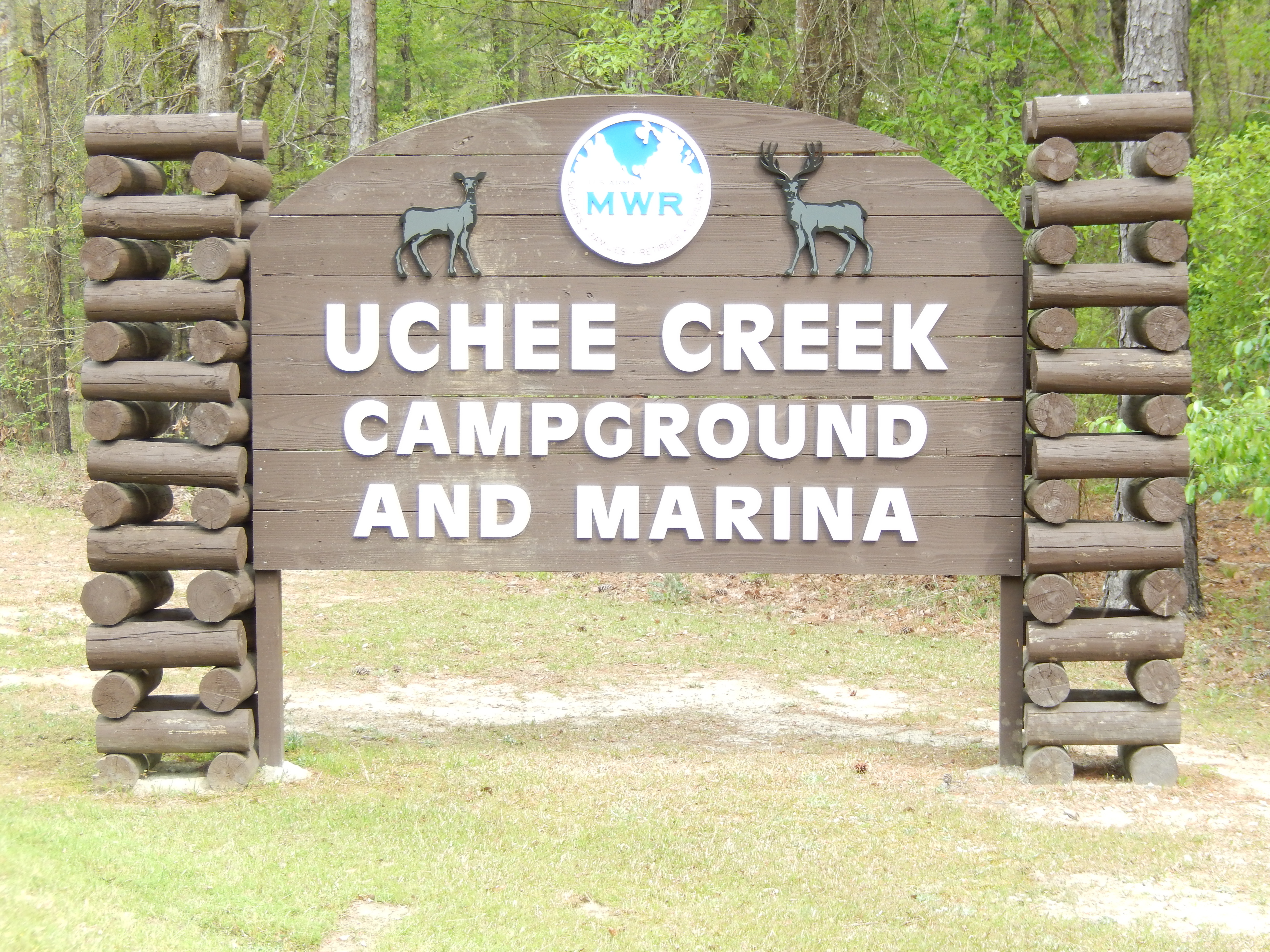 The Uchee Creek Campground at Fort Benning is one of the nicest RV parks run by the Army. It is on Fort Benning property but outside the security perimeter so you don’t have to go through security checkpoints to get there. It’s actually across the Chattahoochee River in Alabama. Uchee Creek is laid out more like a campground, as opposed to many RV parks, with lots of room between sites, campfire rings at each site and plenty of mature trees.