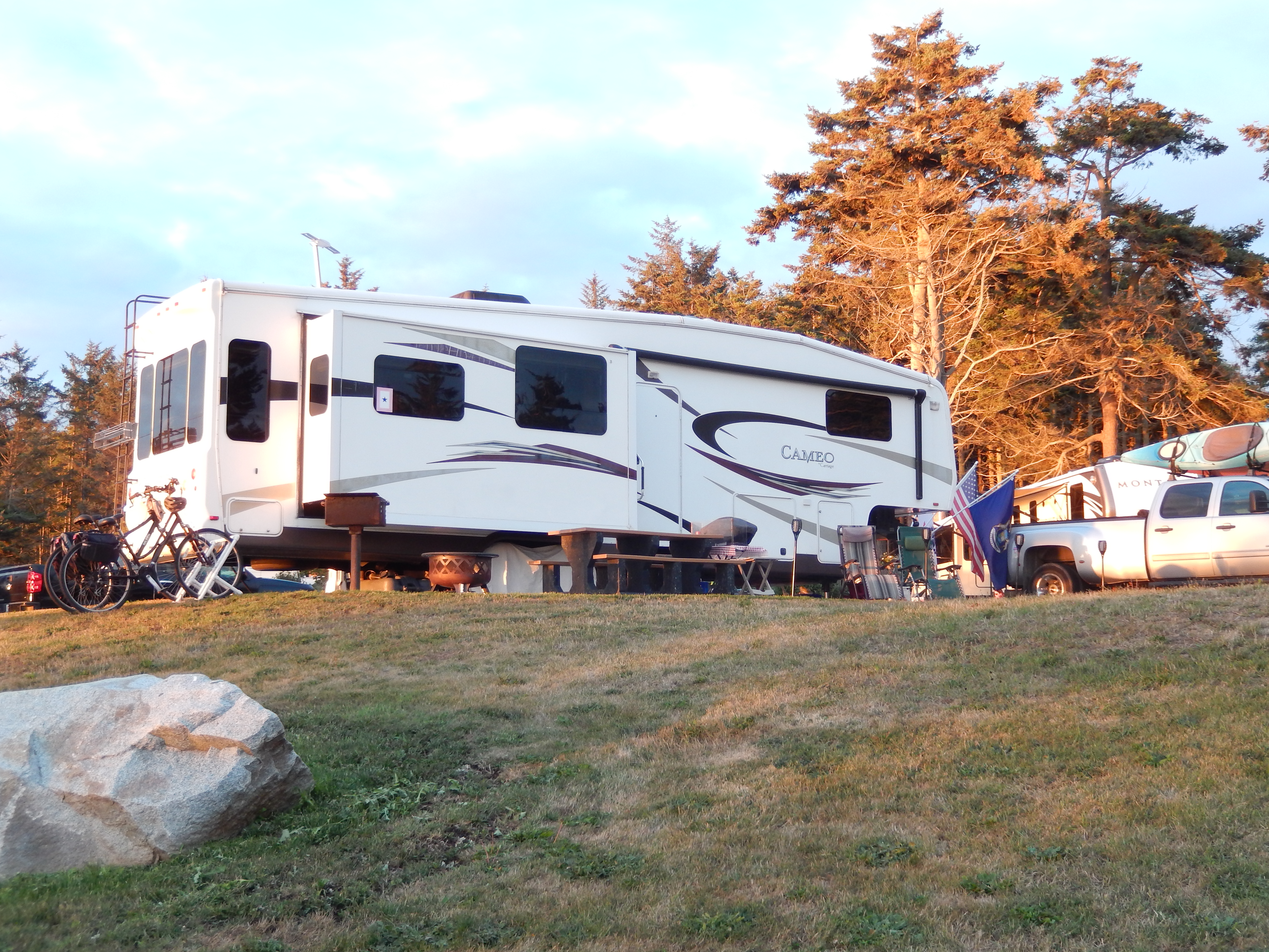 On July 10th we headed up to Naval Air Station Whidbey Island and their Cliffside RV Park. Cliffside is, in our opinion, the prettiest military RV park in the country. In 2012 they rebuilt the entire park from one circle of twenty sites to sixty sites in concentric arcs that are terraced so every site has an unobstructed view of Puget Sound. If that wasn’t enough Ken, the camp host and an avid gardener, has transplanted flowers from other locations to the campground. He keeps fresh flowers in the office and laundry rooms.