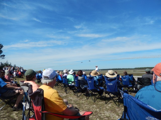 Shortly after we arrived on Monday, October 21st we learned that the Blue Angels would be practicing on Tuesday morning. We made the short bike ride to the viewing area behind the Museum. The practices are open to everyone and there were plenty of people there for the show. If you forget to bring a lawn chair they are available to rent.