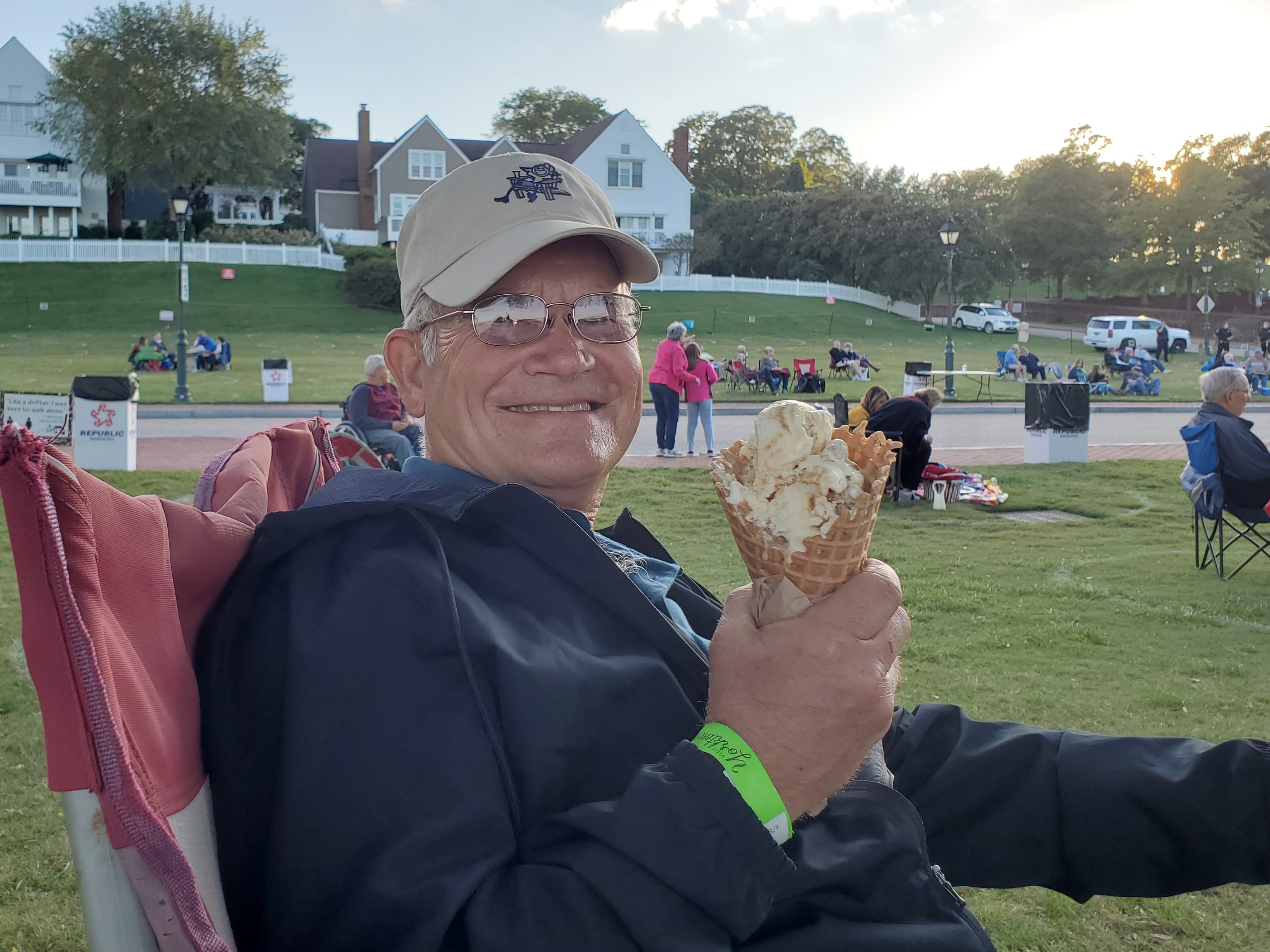 After dinner at the Yorktown Pub, we walked to the Yorktown Riverwalk Landing and attended an outdoor concert. This was part of a series of free concerts presented by York County and we enjoyed both the setting and the music. Ice cream cones from Ben & Jerry’s was a special treat!