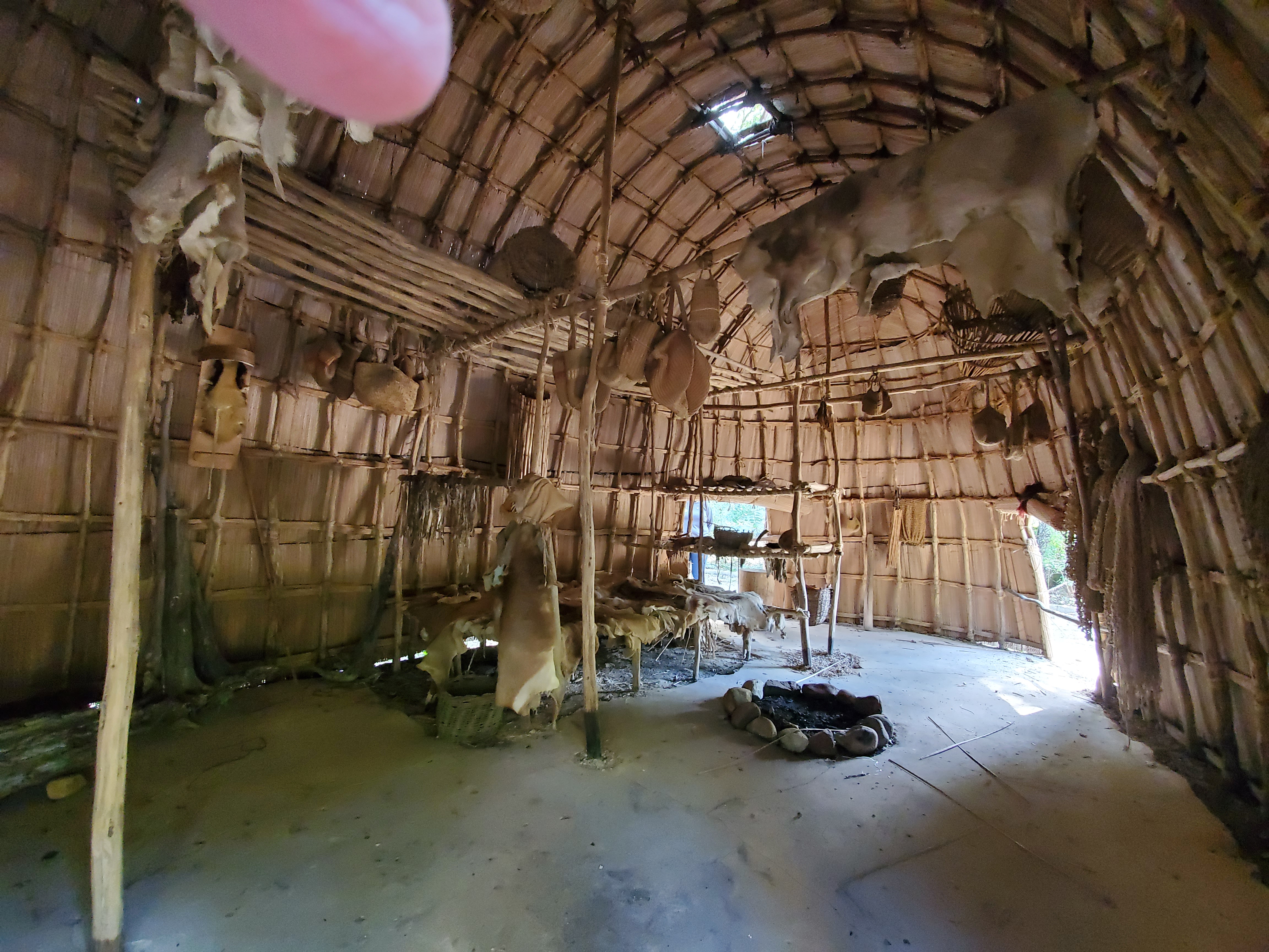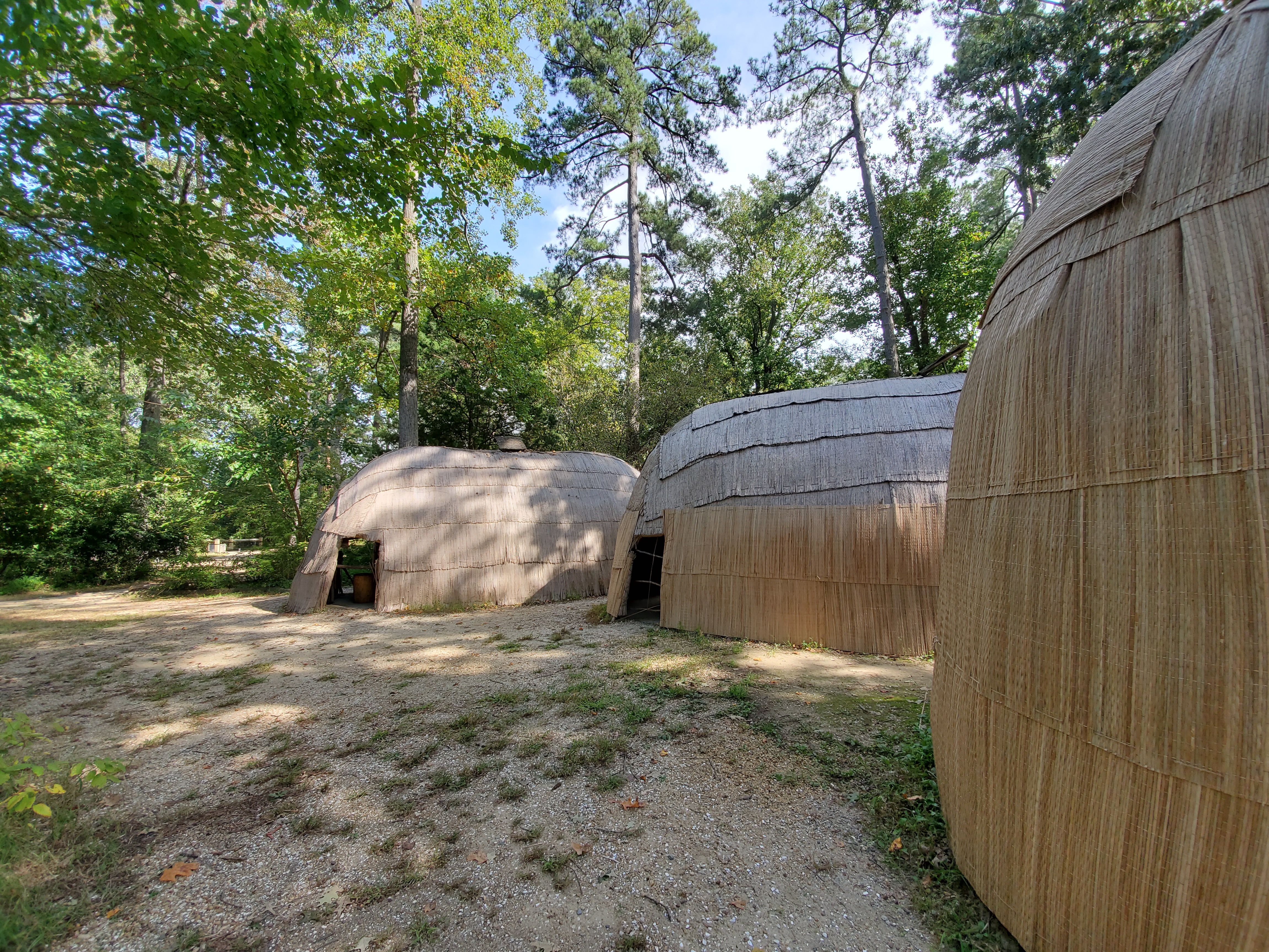 The Jamestown Settlement is a good mix of indoor and outdoor exhibits. All of the outdoor exhibits have living history docents to explain and demonstrate how the early settlers lived. Our first stop was the Powhatan Village.