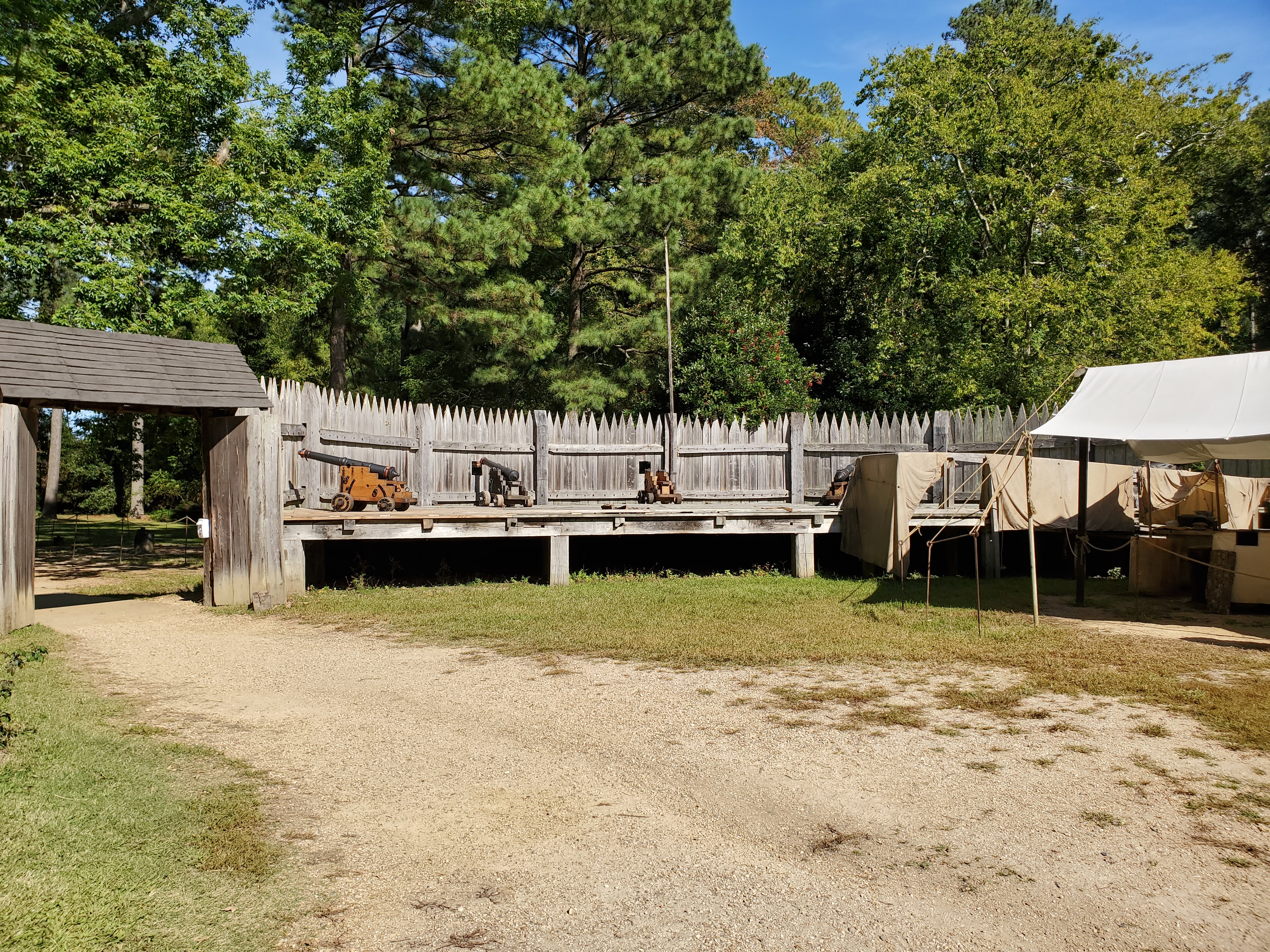 Friday, we went back to Yorktown to tour the American Revolution Museum. This, like the Jamestown Settlement, is operated by the State of Virginia. If you’re in the area I suggest that you visit both of these museums, be sure to buy the pass for entrance to both museums and get a 15% discount. The displays and movies were just outstanding! I particularly liked the personal stories contained in many of the exhibits. There were outdoor displays of a Continental Army encampment and a tobacco farm. The encampment’s field kitchen was a circular trench with alcoves for the cooking fires. I found it interesting the Captain’s tents have not gotten any bigger over the last 200+ years!