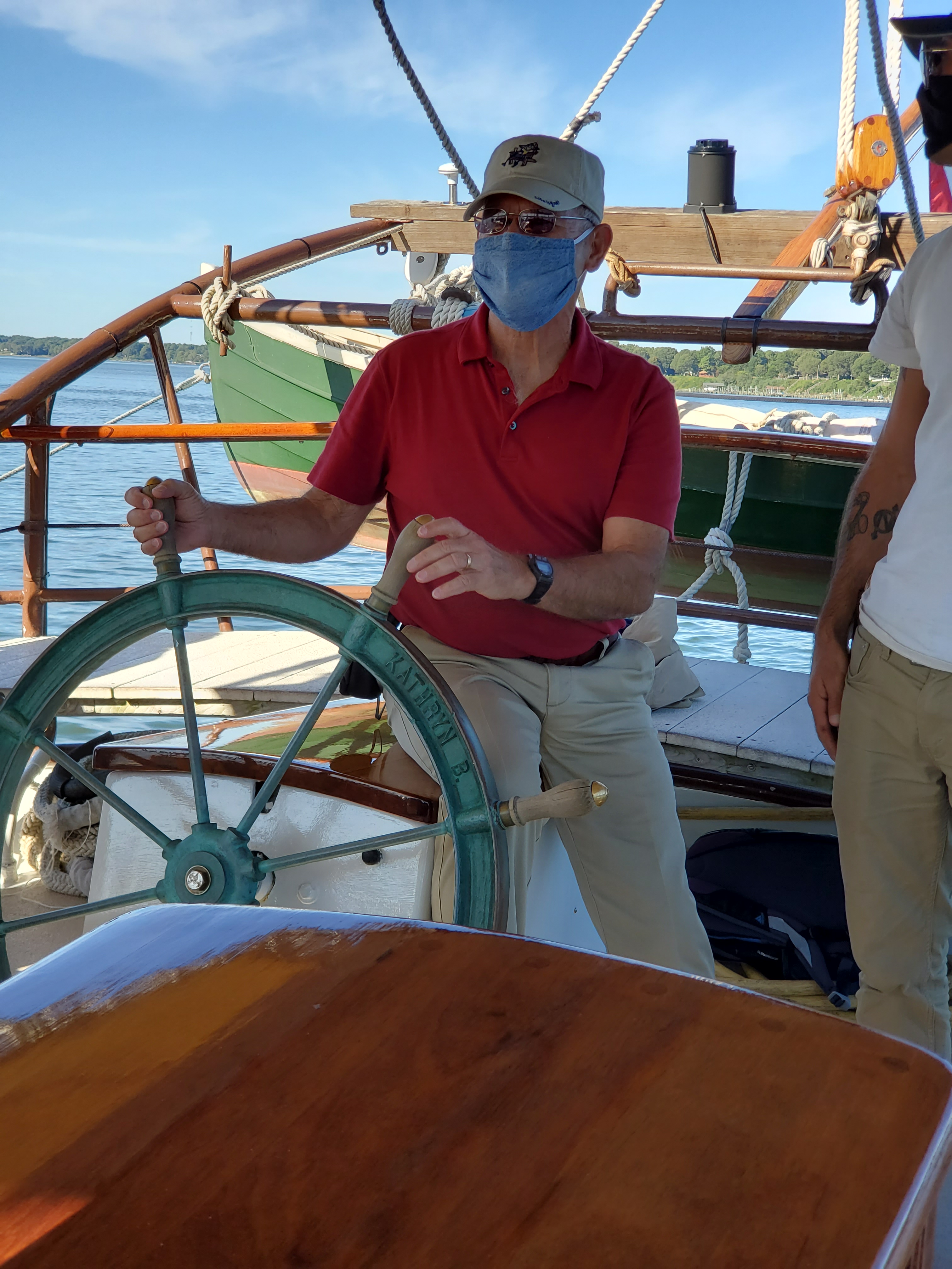 We made one more trip to Yorktown to sail on the Schooner Alliance for a tour of the York River. It was a pleasant cruise, but we were disappointed by the lack of wind and we motored around the area most of the time. The crew did a great job narrating about the sites in the area. As we approached the Yorktown Naval Weapons Station we could see a submarine that was unloading its ammunition before going to the Norfolk Naval Station for maintenance and refitting. However, the highlight of the cruise was discovering a pod of dolphins. They entertained all of us with a great show as they played around our schooner.
