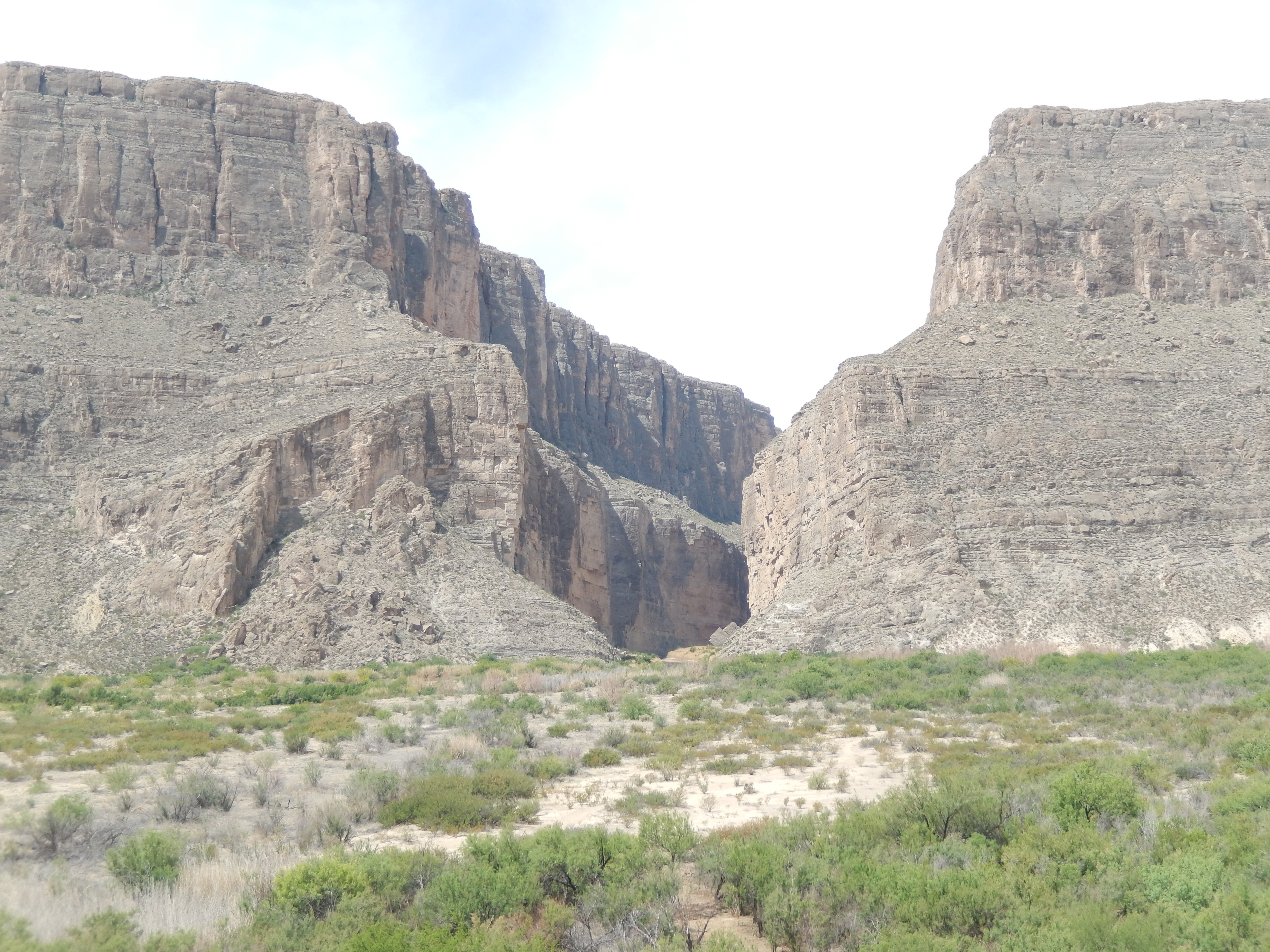 We decided to drive down the unimproved Old Maverick Road to the Santa Elena Canyon. The road was rough and wash boarded, but not terrible. We explored some side roads, looking for blooming flowers on the cacti. The Santa Elena Canyon Trail is an easy hike, but scenic. It follows the Rio Grande River. It is interesting to look across the shallow and narrow river that is easy to wade and see Mexico. Of course, in the canyon, there is no way to exit the river into Mexico, as the canyon walls are sheer cliffs.