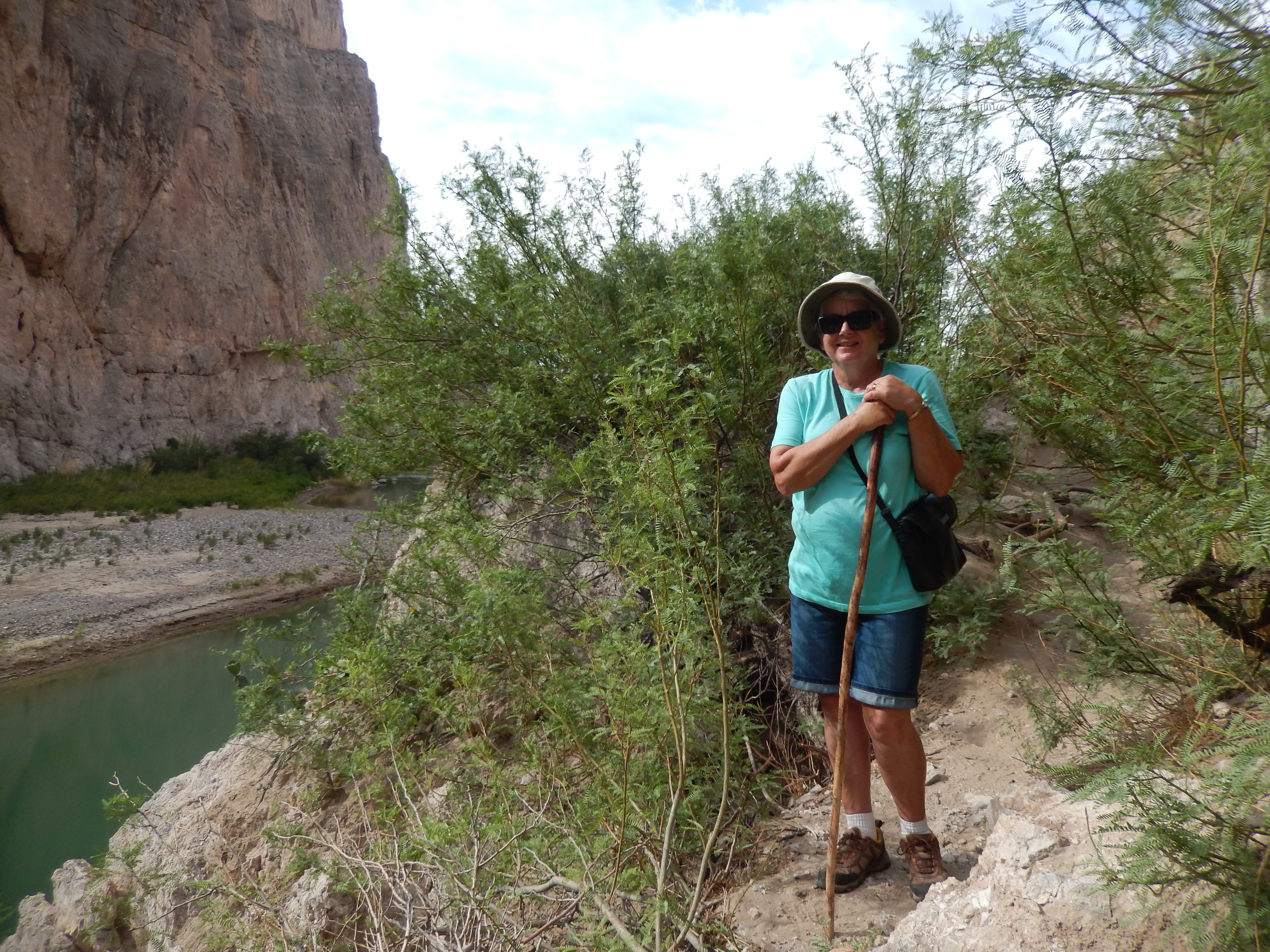 The next day we drove the entire width of the park to the eastern end, to the Rio Grande Village. We began by hiking the Boquillas (Bo-KEY-las) Canyon Trail. Boquillas is a Mexican village, just across the Rio Grande. During non-COVID times, visitors could cross the river at a Point of Entry and shop in Boquillas; however, the border crossing has been closed due to the pandemic. To make up for the loss of income, families from Boquillas have set up small camps on the Mexican side and ride across in canoes or horseback to set up small “stores,” some attended and some not. There were even a couple of men on horseback selling fresh tamales. The river was clear and reportedly has some great fishing. The canyon walls were interesting, with caves caused by erosion.
