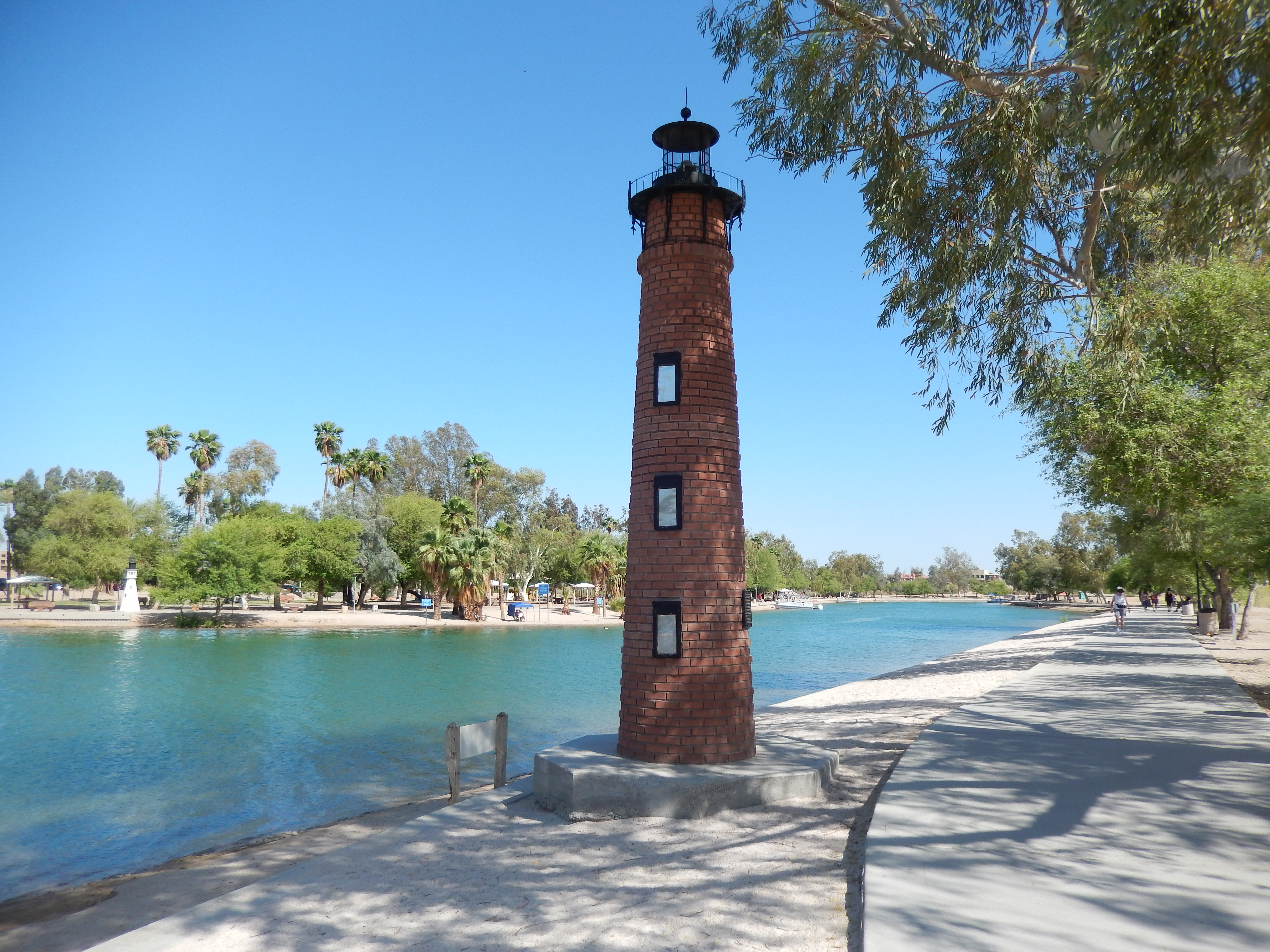 The next day we decided to walk and I was able to check out some of the lighthouse replicas that line the shore on the island and the mainland. When one thinks of lighthouse locations, they rarely consider a landlocked, desert state such as Arizona for their location, but it just so happens that Lake Havasu City is home to more lighthouses than any other city in the entire country. These scaled-down replicas are actual functioning navigational aids built to the specifications of famous lighthouses on the East Coast, West Coast and Great Lakes. The Lake Havasu Lighthouse Club is a non-profit group of independent citizens dedicated to the preservation, improvement and promotion of Lake Havasu and the City. They wanted to make the lake a safe place for night boating and fishing. Instead of just settling on simple and mundane lighthouses that could be cheaply produced, they took pride in their development and chose to highlight the famous lighthouses in the U.S. by making smaller replica lighthouses. These fully-functional replica lighthouses make an already adventurous boating experience even more beautiful and unique. All of the lighthouses on the west side of Lake Havasu are replicas of famous lighthouses on the West Coast, while the east side consists of East Coast replicas. The lighthouses around the island are all replicas of lighthouses from the Great Lakes.
