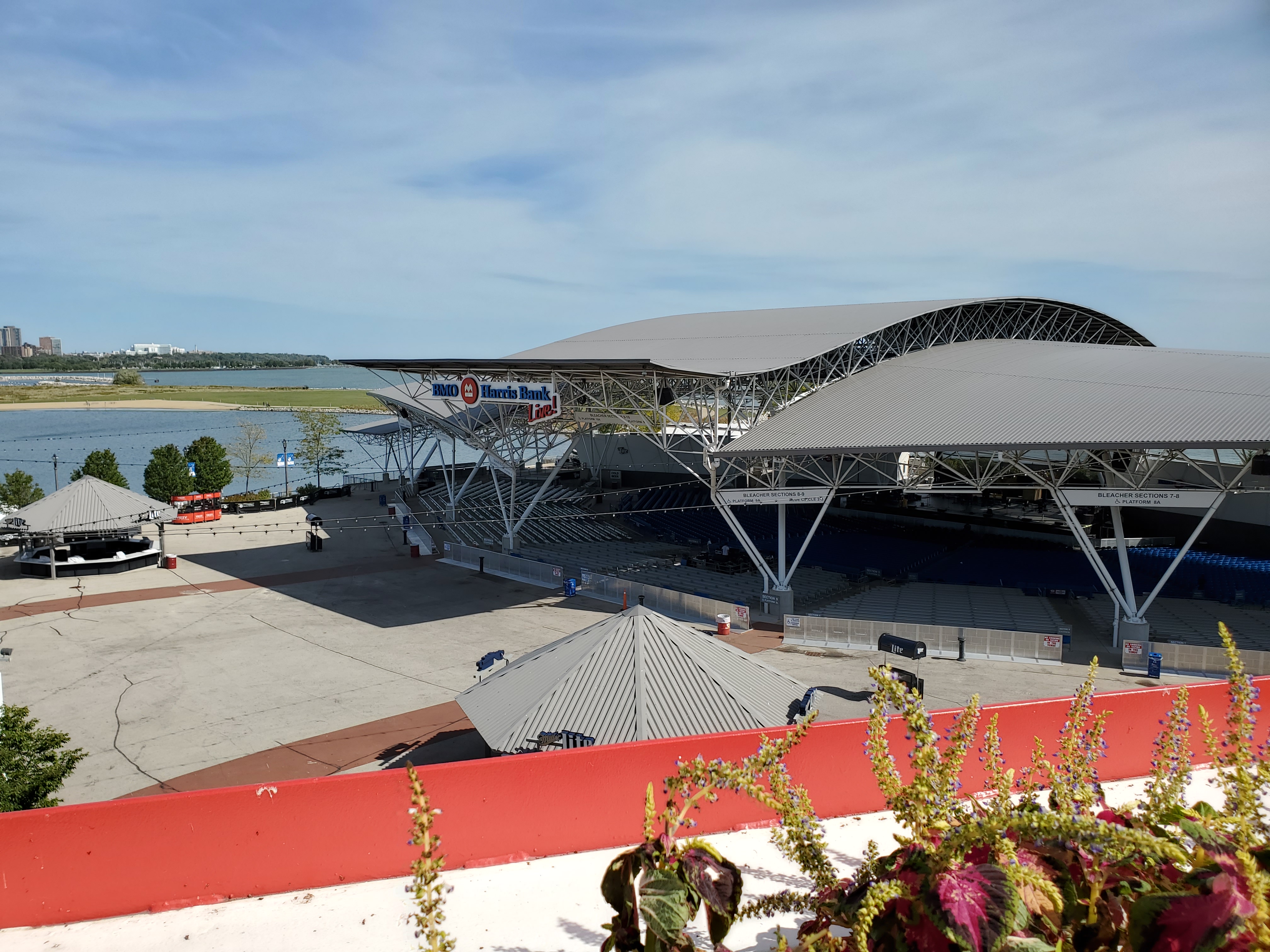 We left LaCrosse on September 21st to drive to Milwaukee. There is only one RV park in Milwaukee and that is the State Fairgrounds. If you are looking for a campground in a natural, wooded setting, this is not it! It is essentially a parking lot with water and electrical hookups. As bad as this may sound, it was perfect for what we wanted. Pat’s sister, Mary Lee, and her family live in Milwaukee and their daughter, Ashley, works for Summerfest, an annual music festival in Milwaukee. In our planning, we thought that the last weekend of Summerfest would be while we were there. Well our planning was off and we missed it by a week! However, Ashley gave us a tour of the Summerfest grounds.