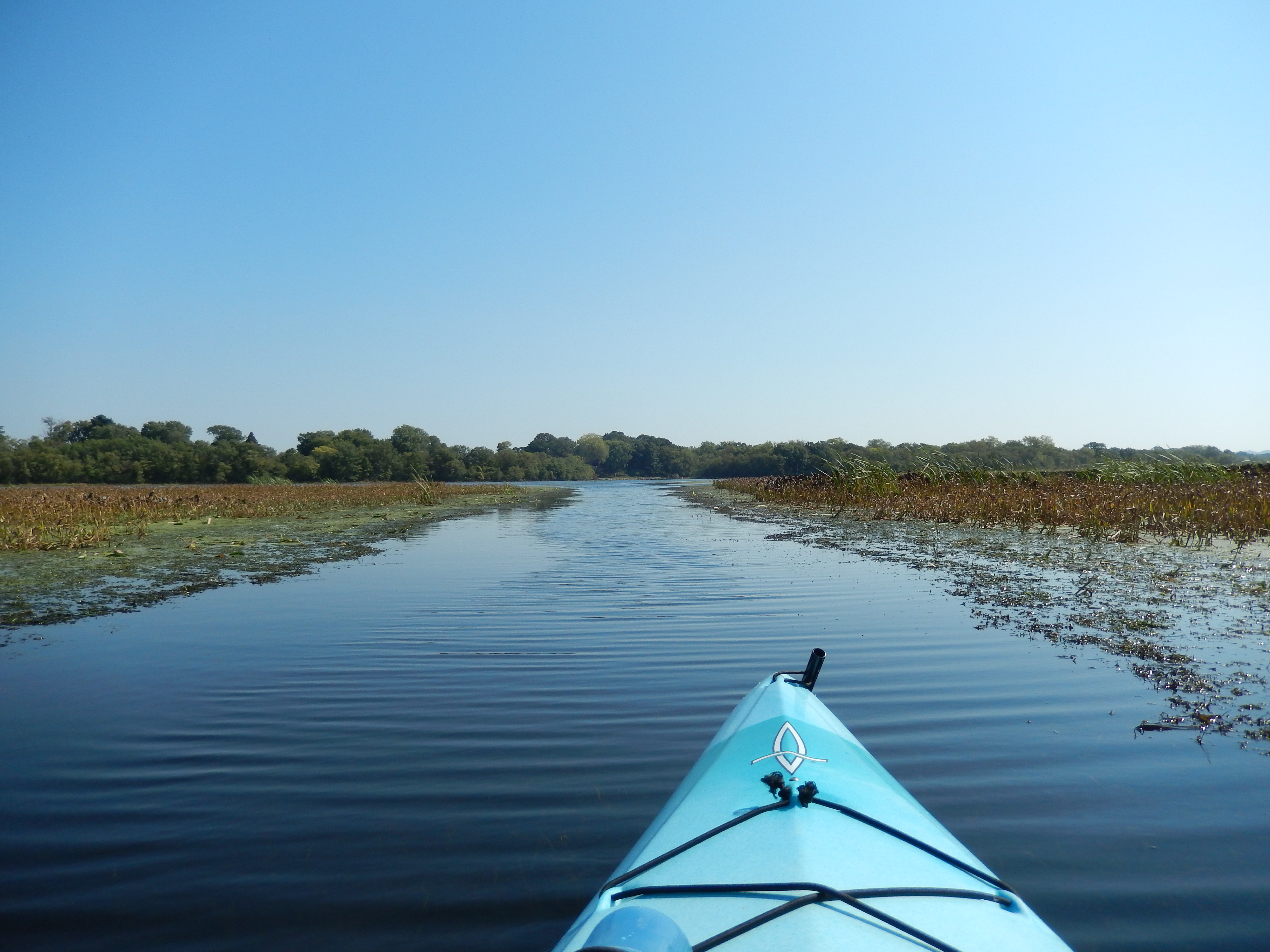 The last time we came this way we camped on an island in the Mississippi River and kayaked in the main channel of the Mississippi. This time we paddled the Lake Onalaska Canoe Trail through the backwaters of the Mississippi. What a difference! I dropped Pat and the kayaks off at our launch point, dropped off the truck at our take-out point and rode my bike back to the start. We were on small canals through hammocks and grasslands. Between the directional signs and my GPS, we were able to stay on course. It was a nice way to see a different part of this historic river.