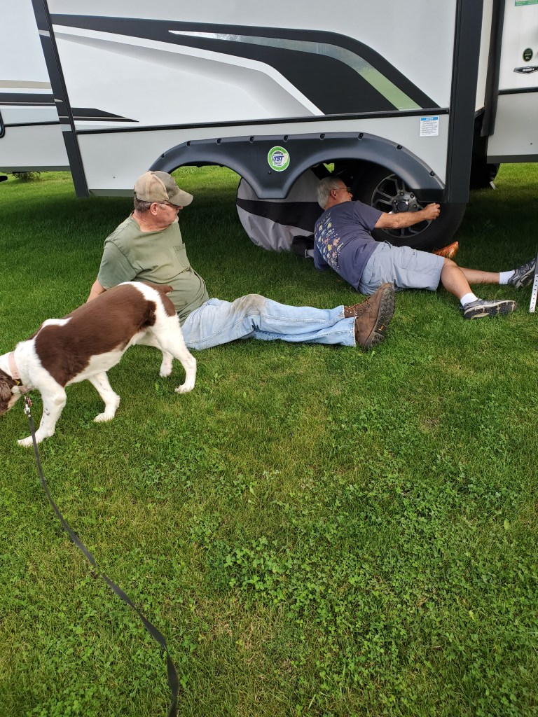 Our next stop was Bad Axe where we “moochdocked” in Pat’s brother’s backyard. Geri and his wife, Marcia, are always great hosts. I was able to wash our trailer and truck and get some other small maintenance items completed. It is so much fun to crawl under the trailer to grease our suspension! Pat and Marcia shared the meals and Geri and I did the grilling. One of our “go to” RV dealers is Marlette RV, south of Bad Axe. We arranged for them to check and repack the seals on the trailer wheels on the day we moved from Bad Axe to Lansing. Marlette RV is very dependable. If you find yourself in the Michigan Thumb and need RV repairs or service, check them out.