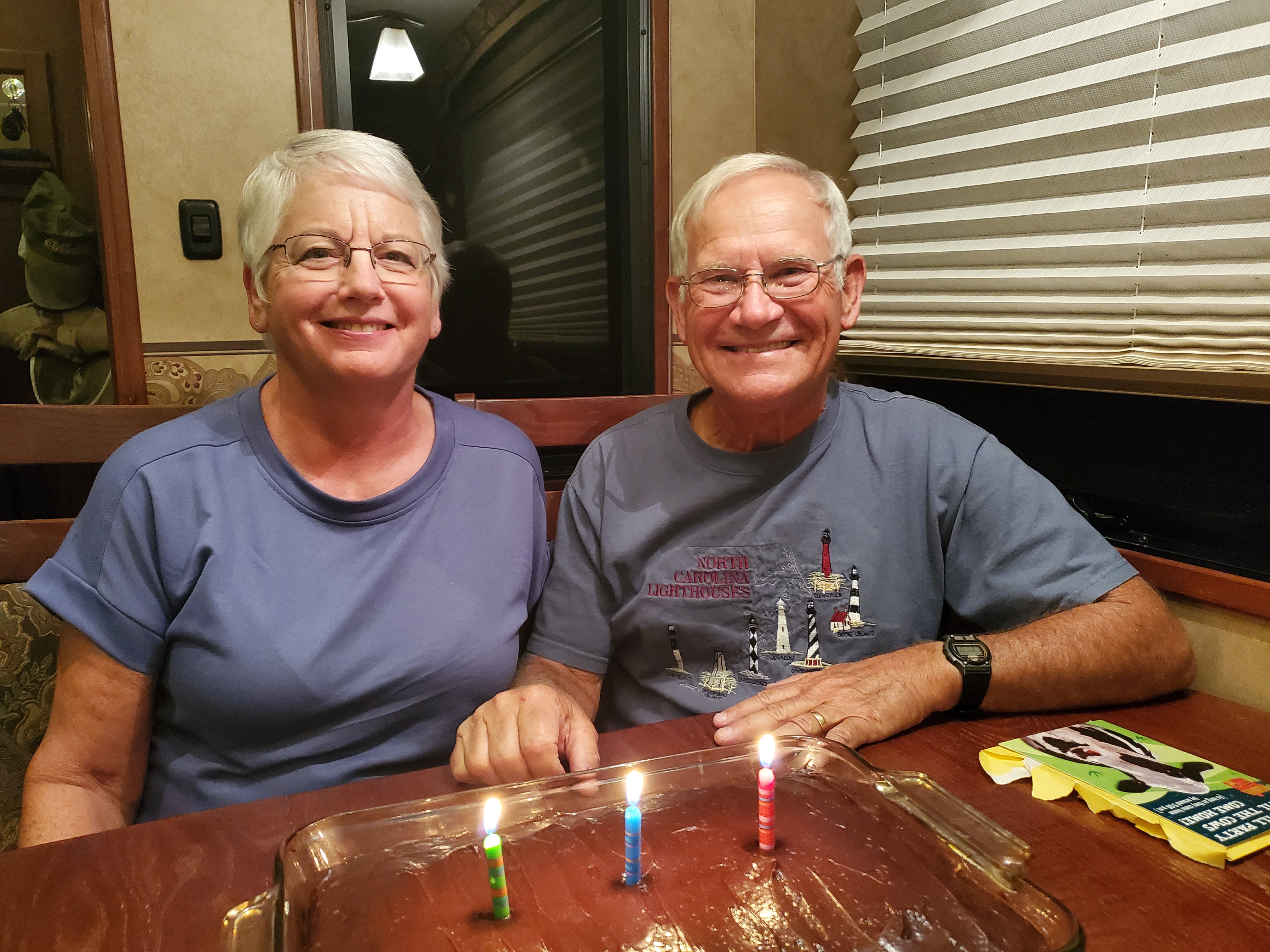 Two of our friends, Ray and Harriet, pulled in a few days after us. They joined us for dinner at the Safe Harbor Seafood Restaurant and birthday cake at our rig to celebrate my 73rd birthday. We don’t often have the opportunity to celebrate these occasions with friends, so that made it special.