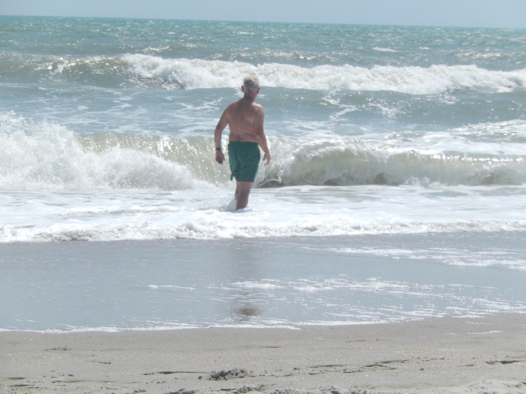 Our next campground was Myrtle Beach State Park. This is our favorite campground in Myrtle Beach. It is like a forested oasis in the midst of commercial RV parks. This is a place to relax and enjoy the ocean. We got to walk on the beach for miles as well as ride the multiple bike paths. There was a multitude of geocaches in the area for me to find. One day the air was warm and the waves were high – that made for a perfect day for body surfing in the ocean. What a fun time!