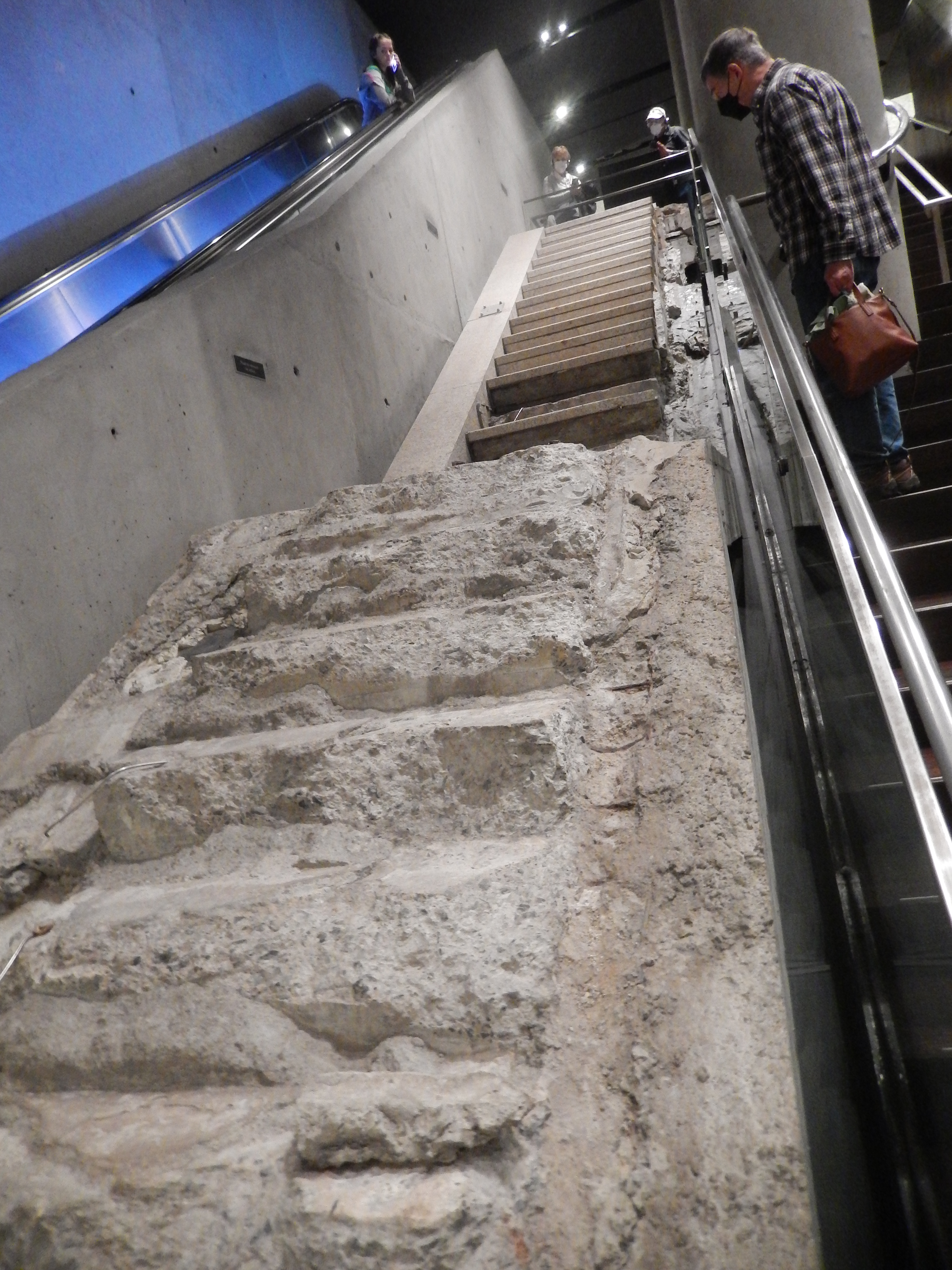 On Tuesday, we took the 10:00 tour of the 911 Memorial. As we arrived Marines from the Amphibious Assault Ship “USS Bataan” were completing a unit run to the Memorial What an inspirational sight! Inside, the exhibits did a marvelous job of telling the story, including the attack on the Pentagon and the crash of Flight 93. They also described the build up to that day with the story of the first attack on the World Trade Center in 1993. I was struck by how quiet it was throughout the tour. There was a low murmuring as families and groups commented to each other in low tones, but nothing more. Instinctively, everyone recognized the solemnity of the Memorial.